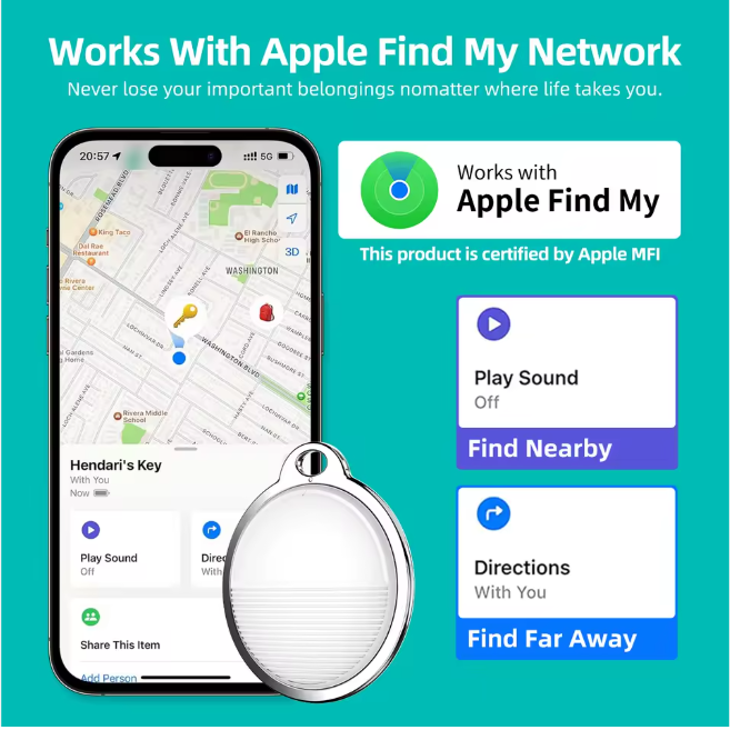 | وصف | جهاز صغير على شكل قرص يستخدم لتتبع العناصر مثل المفاتيح أو المحافظ أو الأمتعة عبر تطبيق الهاتف الذكي - يعمل المتعقب مع تطبيق (فايند مي) و (فايندهب)- يضمن الجهاز حماية الخصوصية حيث تكون جميع الاتصالات مجهولة المصدر ومشفرة - مدة التنبيه 10 ثواني |