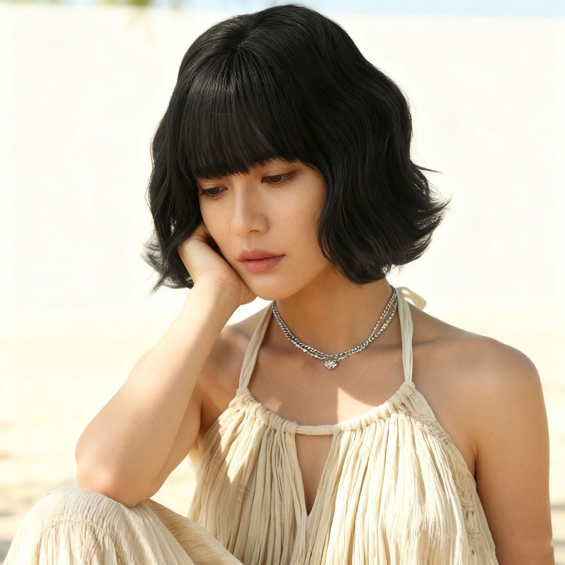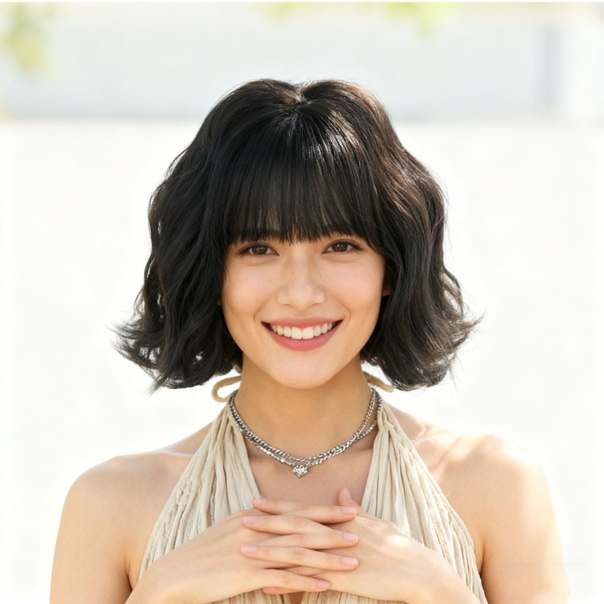 شعر مستعار قصير ومجعد بلون طبيعي للنساء