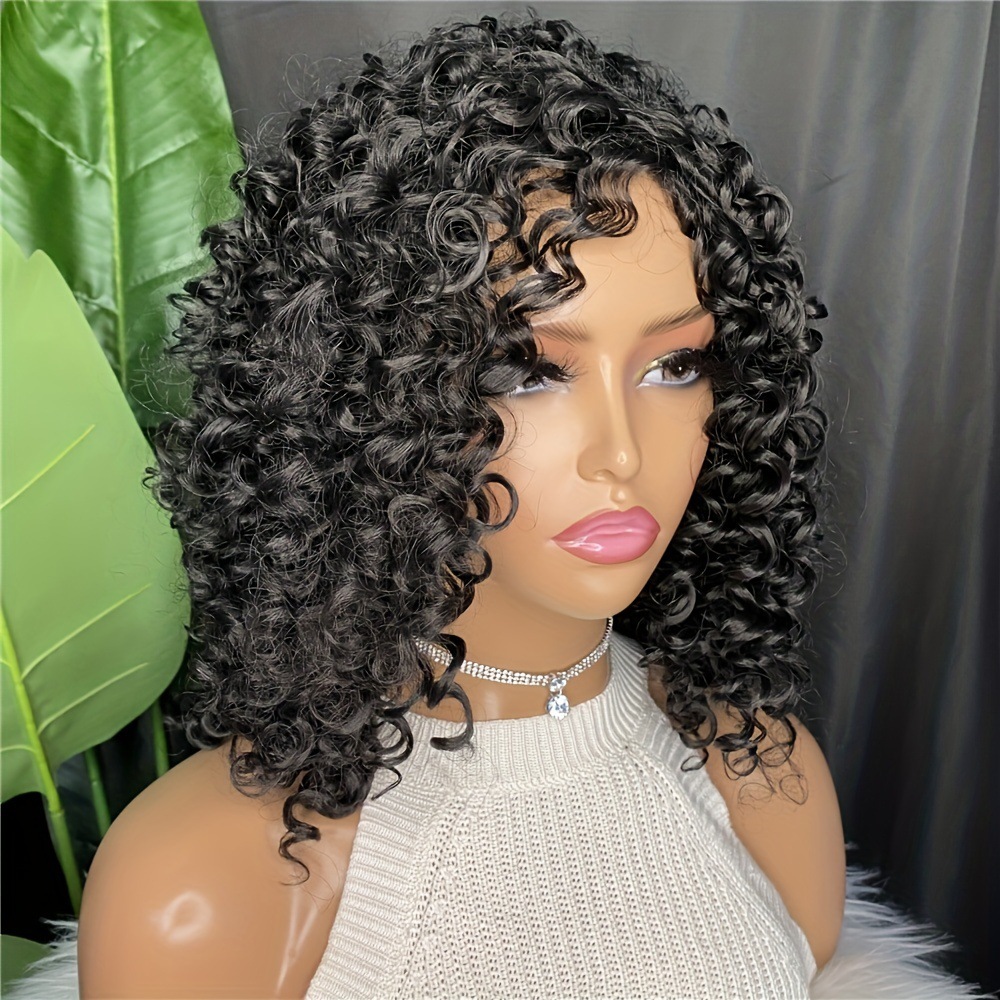 شعر مستعار قصير ومجعد بللون الأسود للنساء