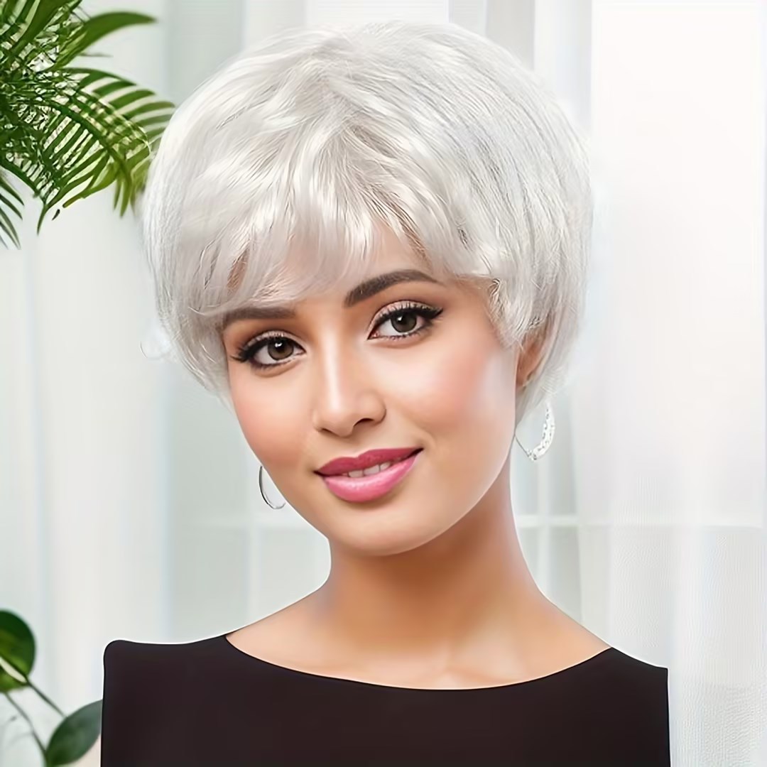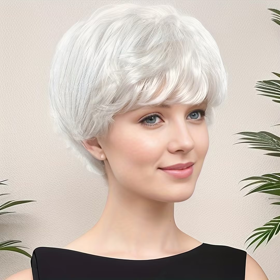 شعر مستعار أبيض قصير فاخر بتصميم واقعي يشبه الشعر الحقيقي