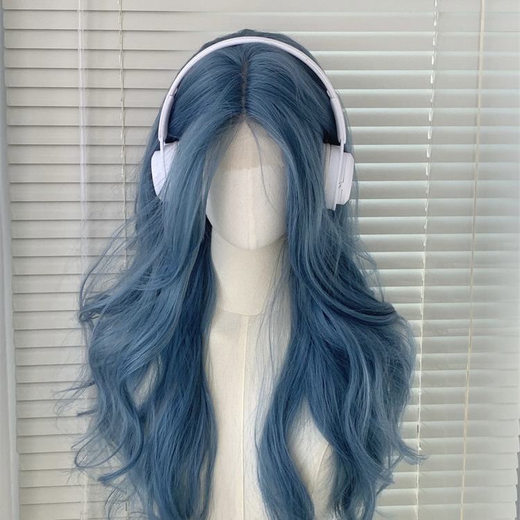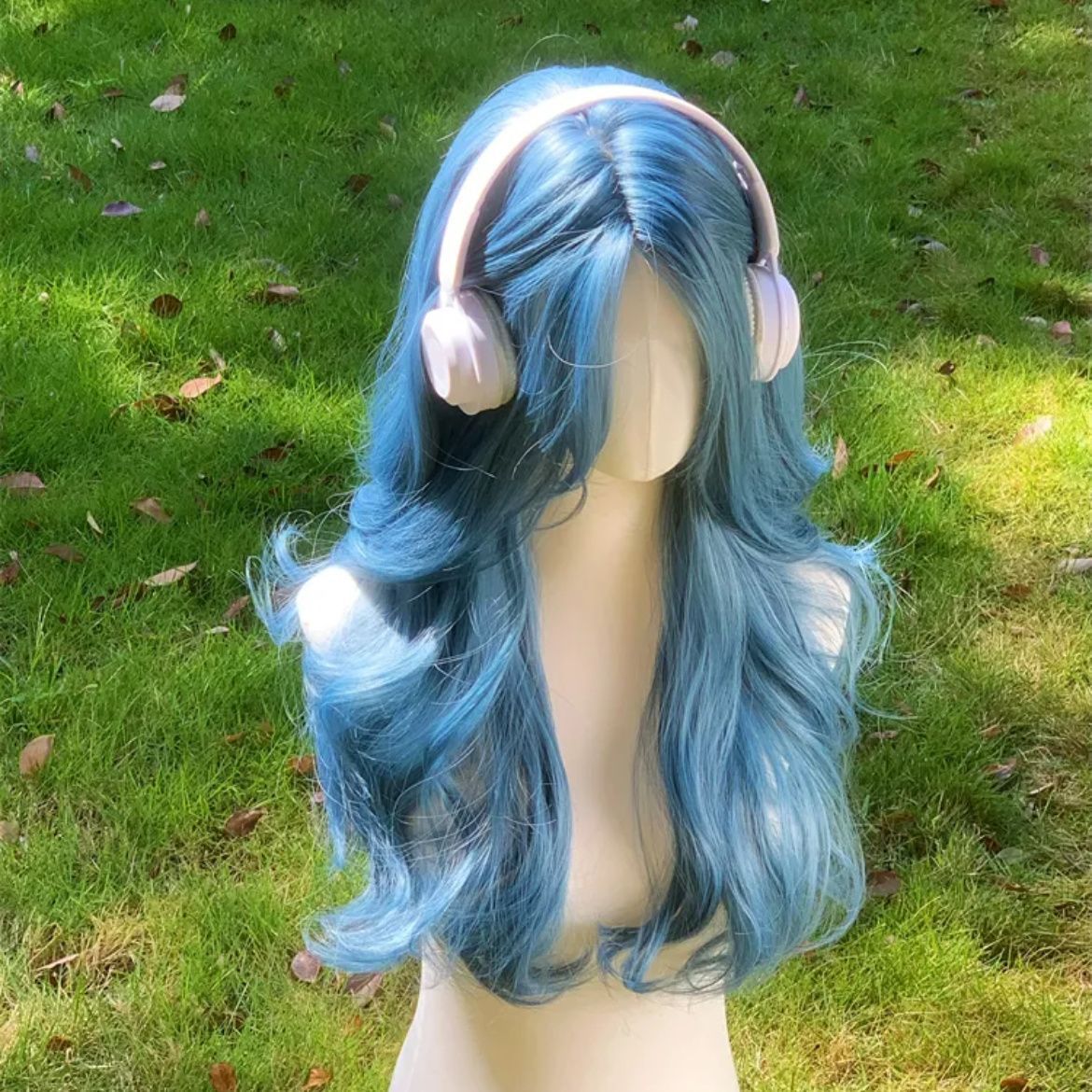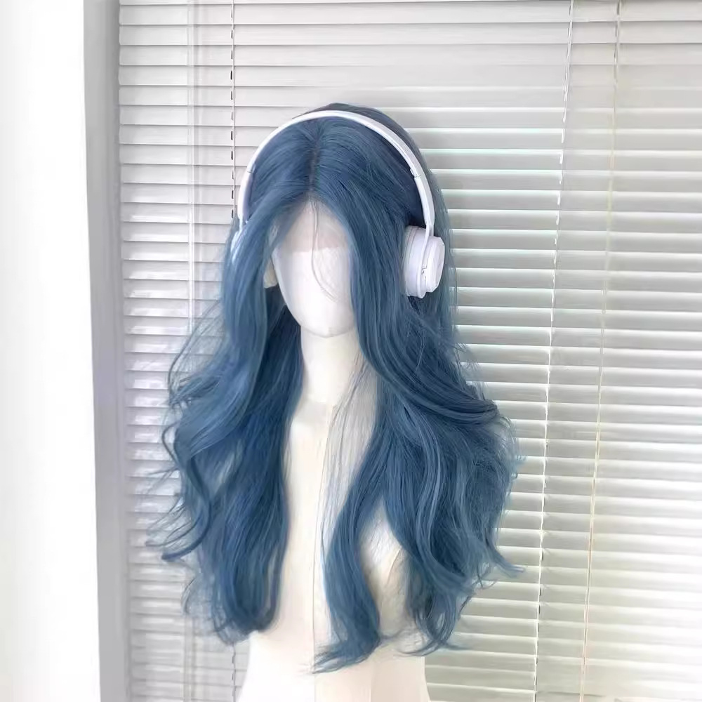 شعر أزرق ضبابي طويل ومموج بلمسة منعشة للنساء