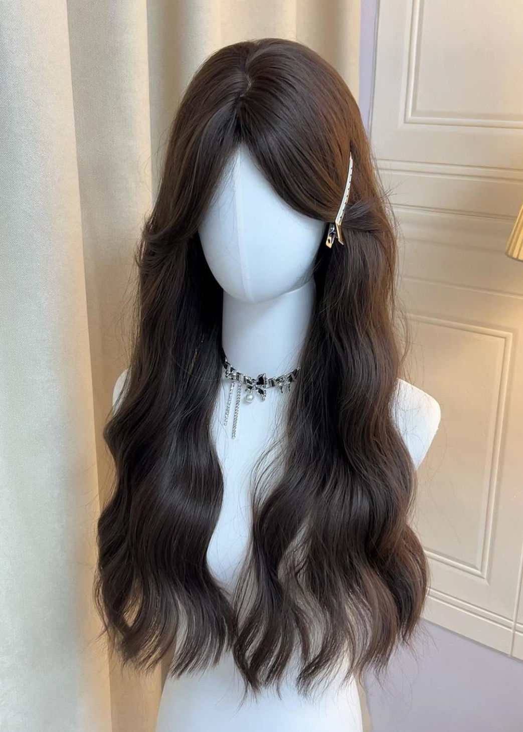 باروكة شعر طويلة ومموجة بشكل طبيعي مع فرق في المنتصف للنساء