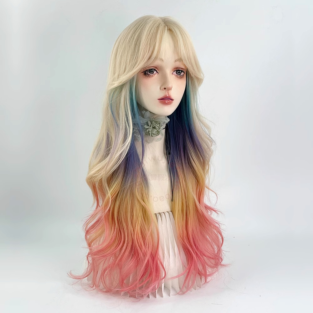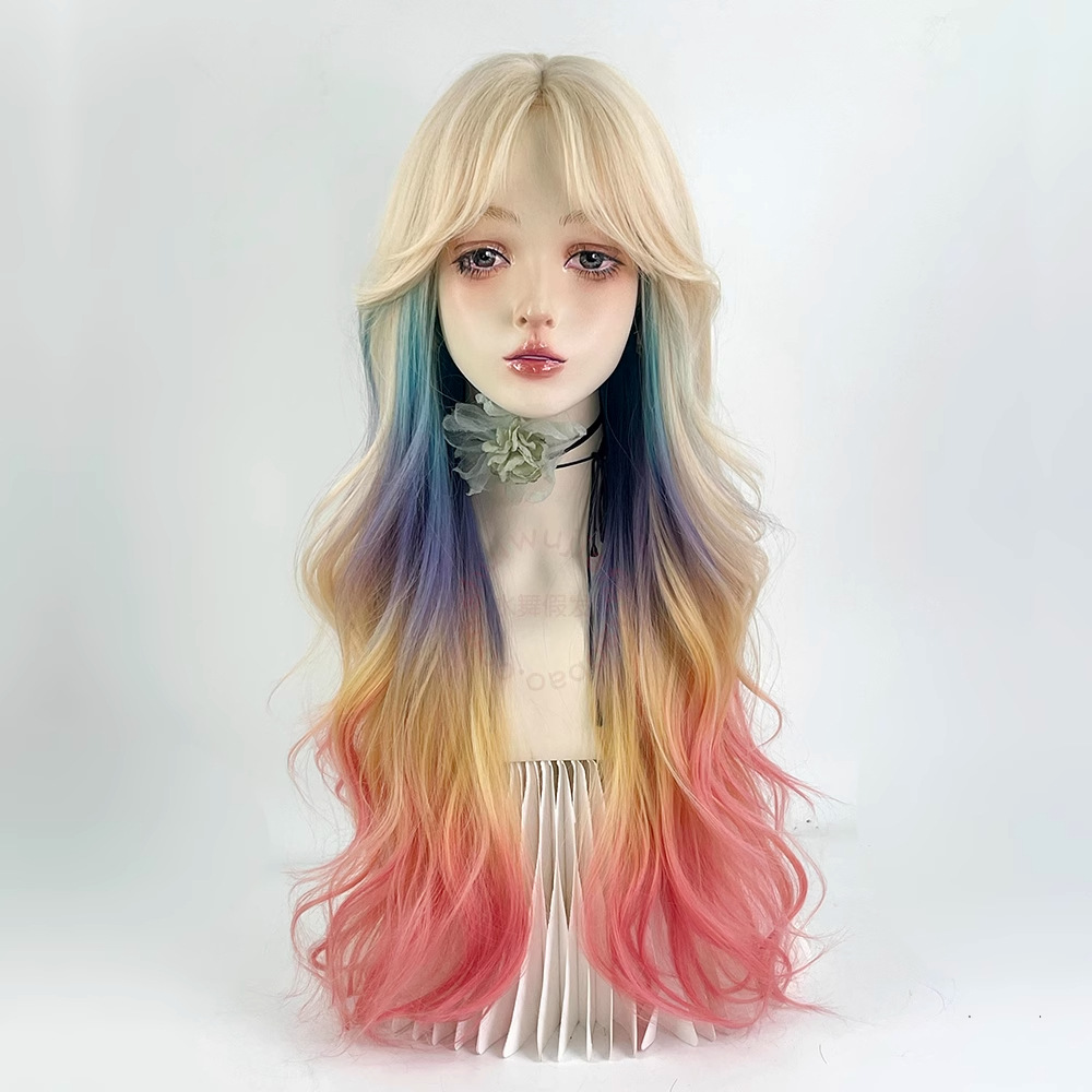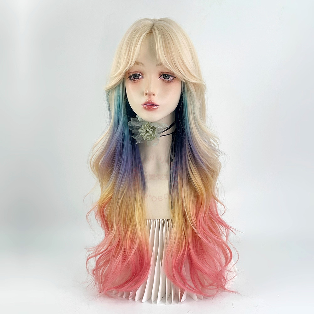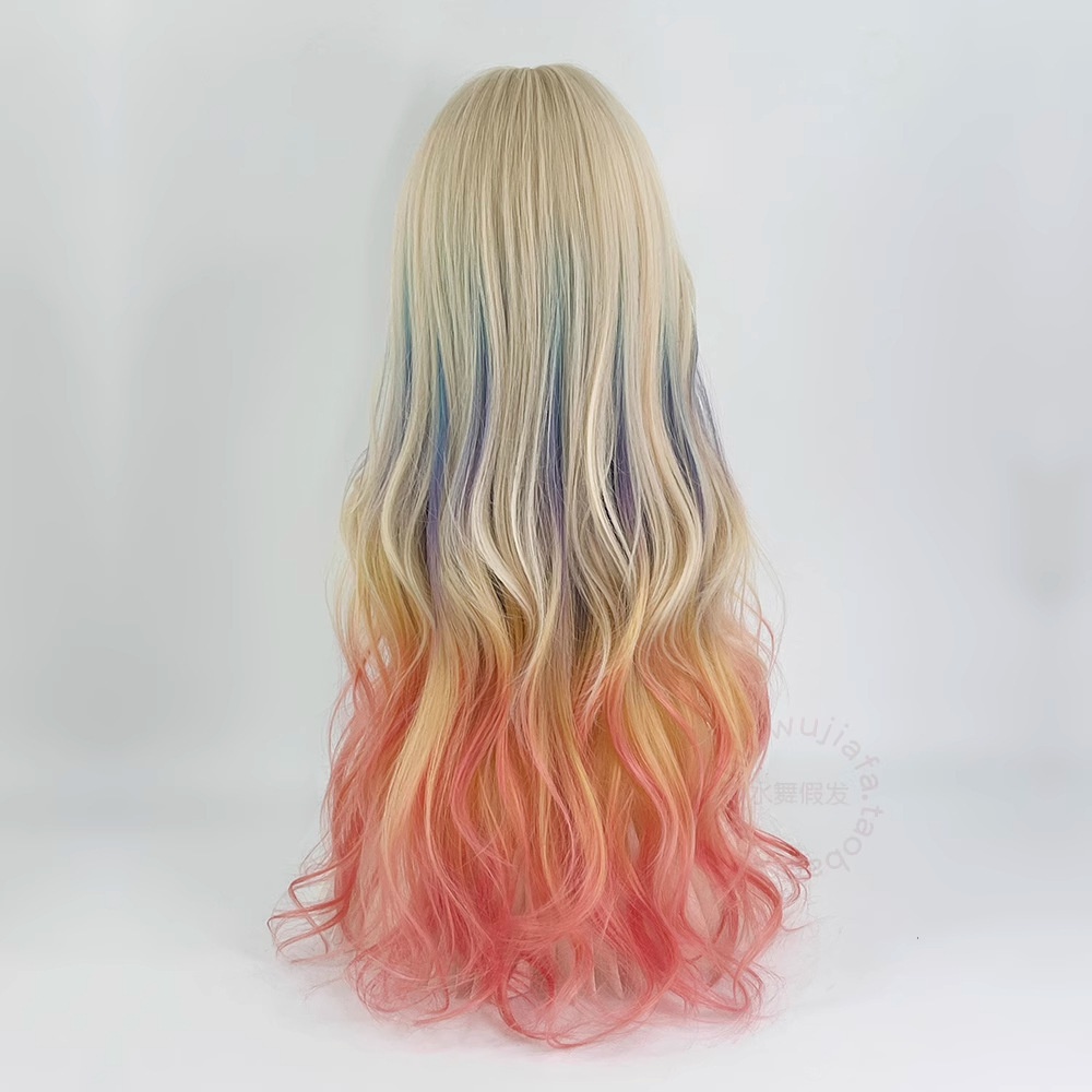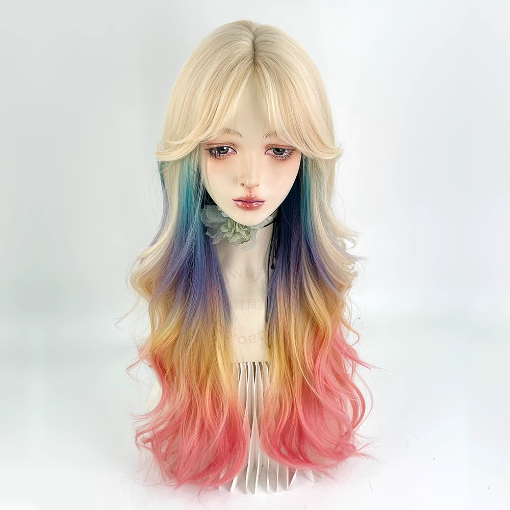 باروكة شعر حريري ناعم كاملة الرأس بألوان قوس قزح للنساء