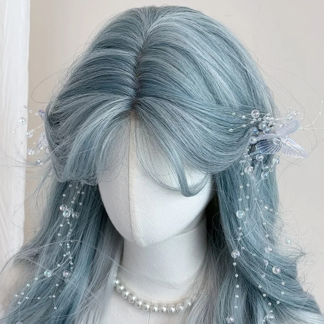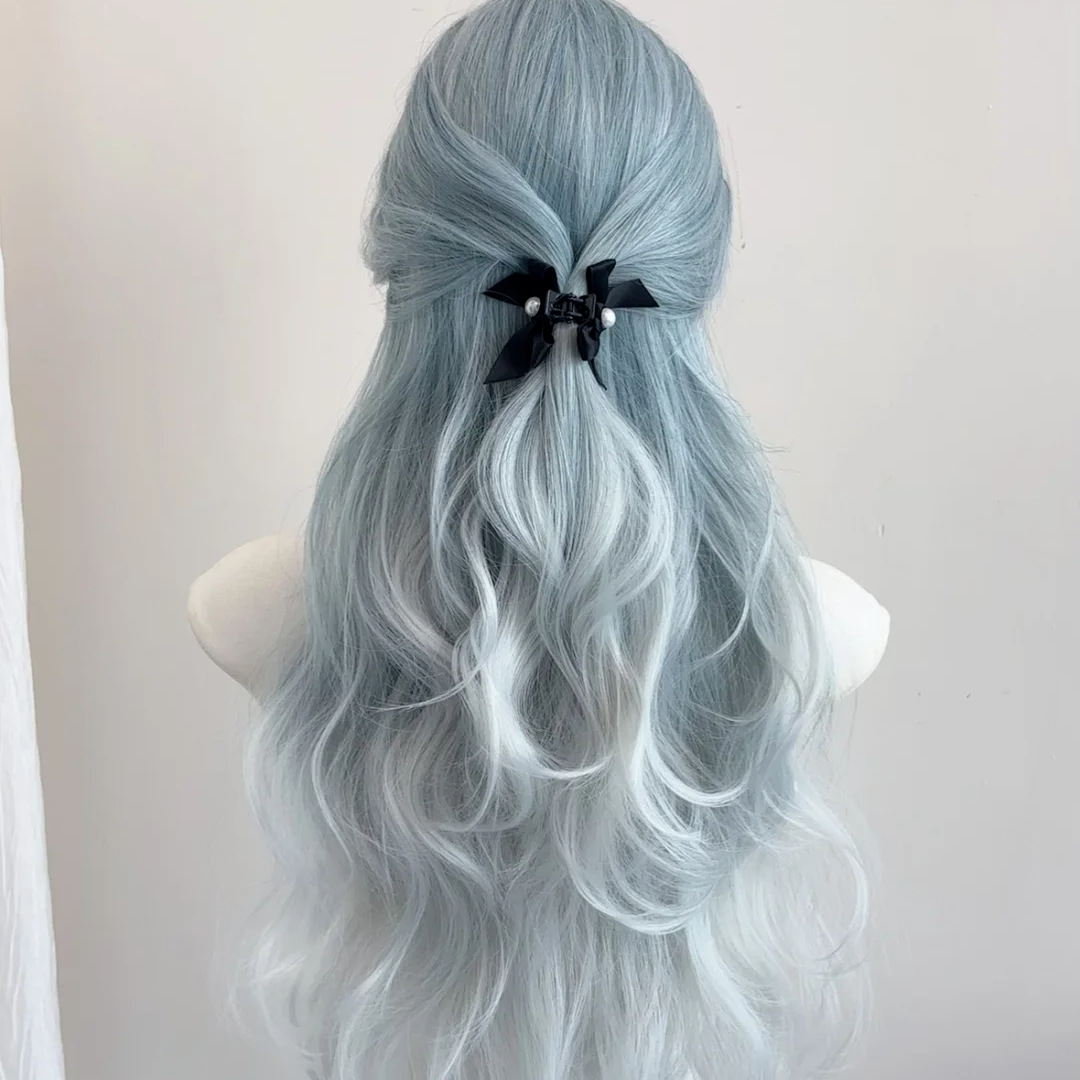 شعر مستعار من الألياف الناعمة طويل متدرج باللون الأزرق النعناعي