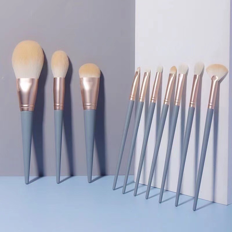 مجموعة فرشاة مكياج ناعمة لتوزيع كريم الأساس والبودرة بتغطية متجانسة / 10 قطع
