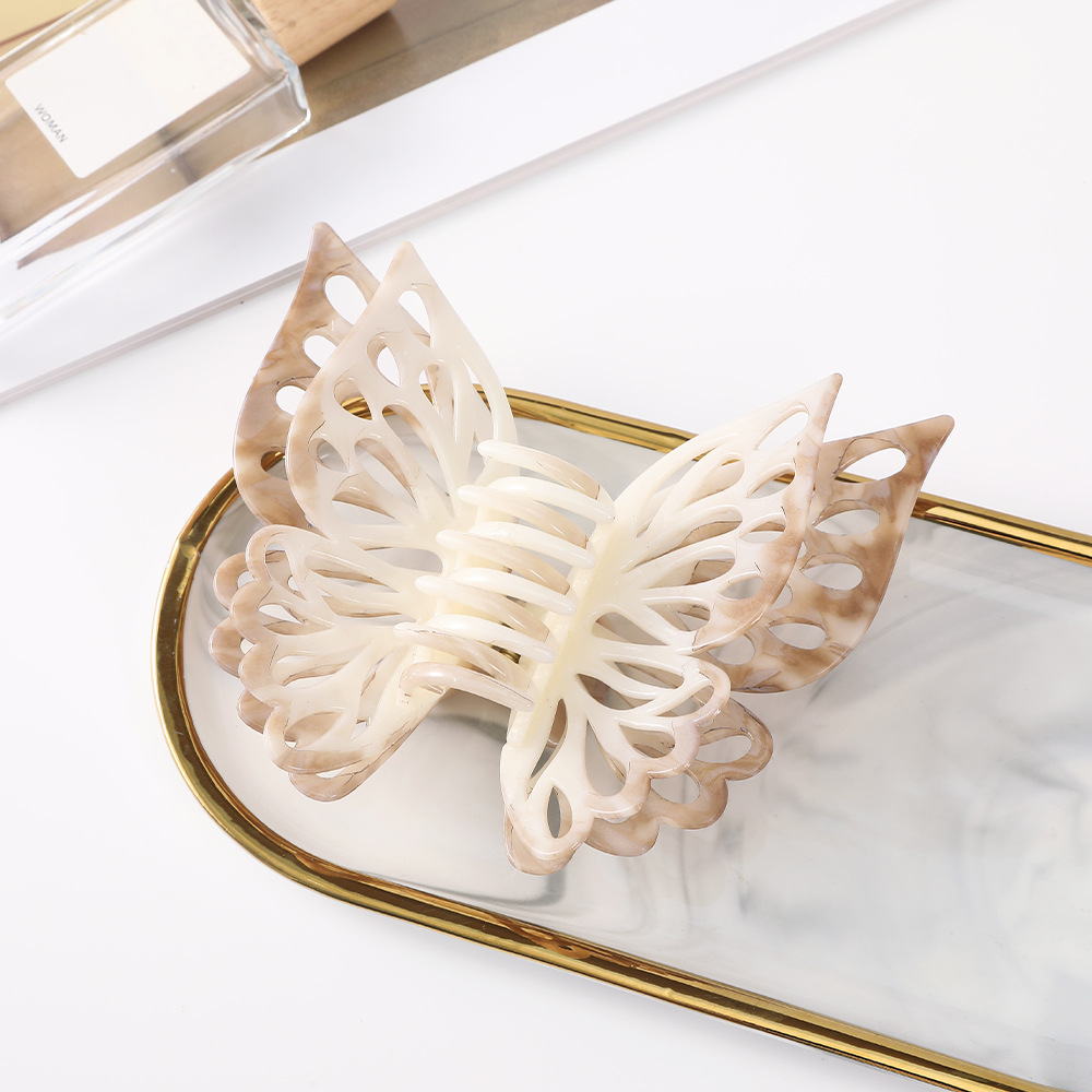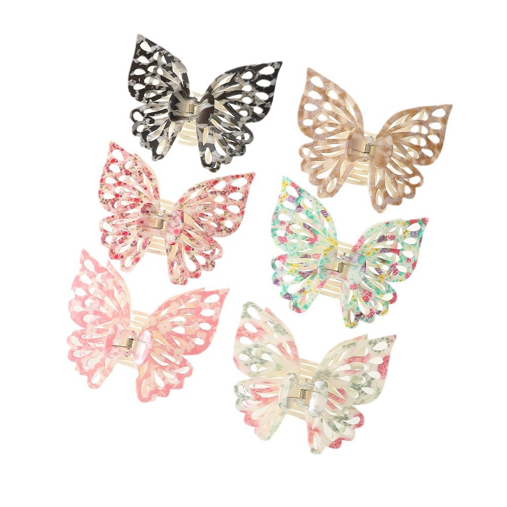 مشابك شعر منقوشة بشكل فراشة من الراتنج للنساء