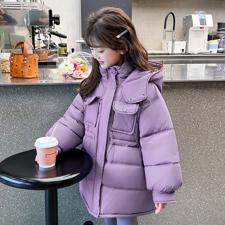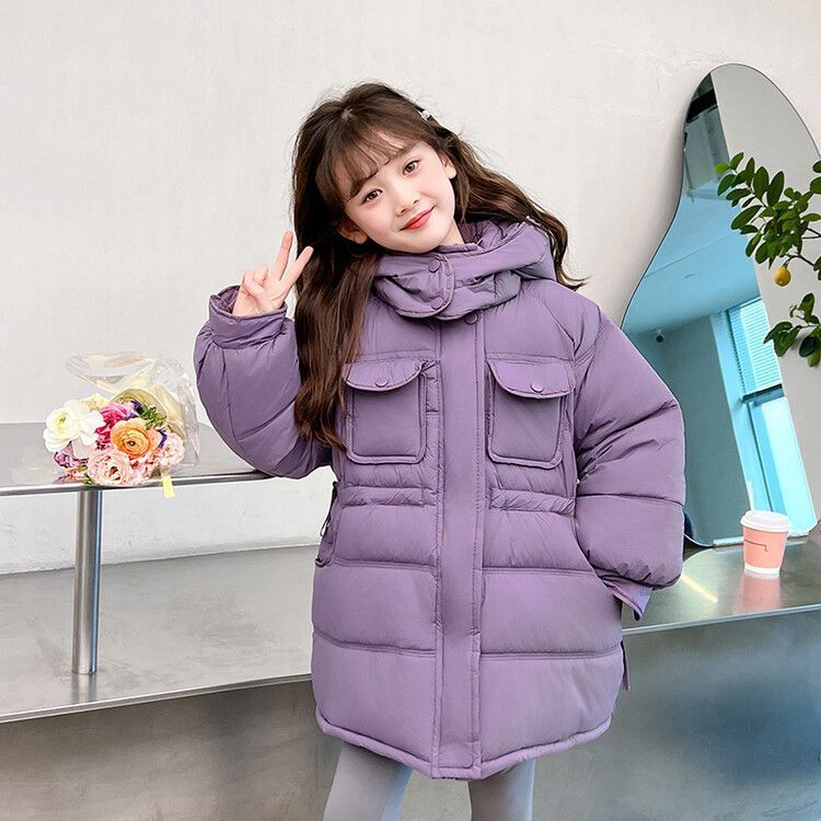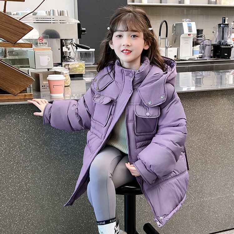 جاكيت سميك متوسط الطول مبطن بالقطن للبنات