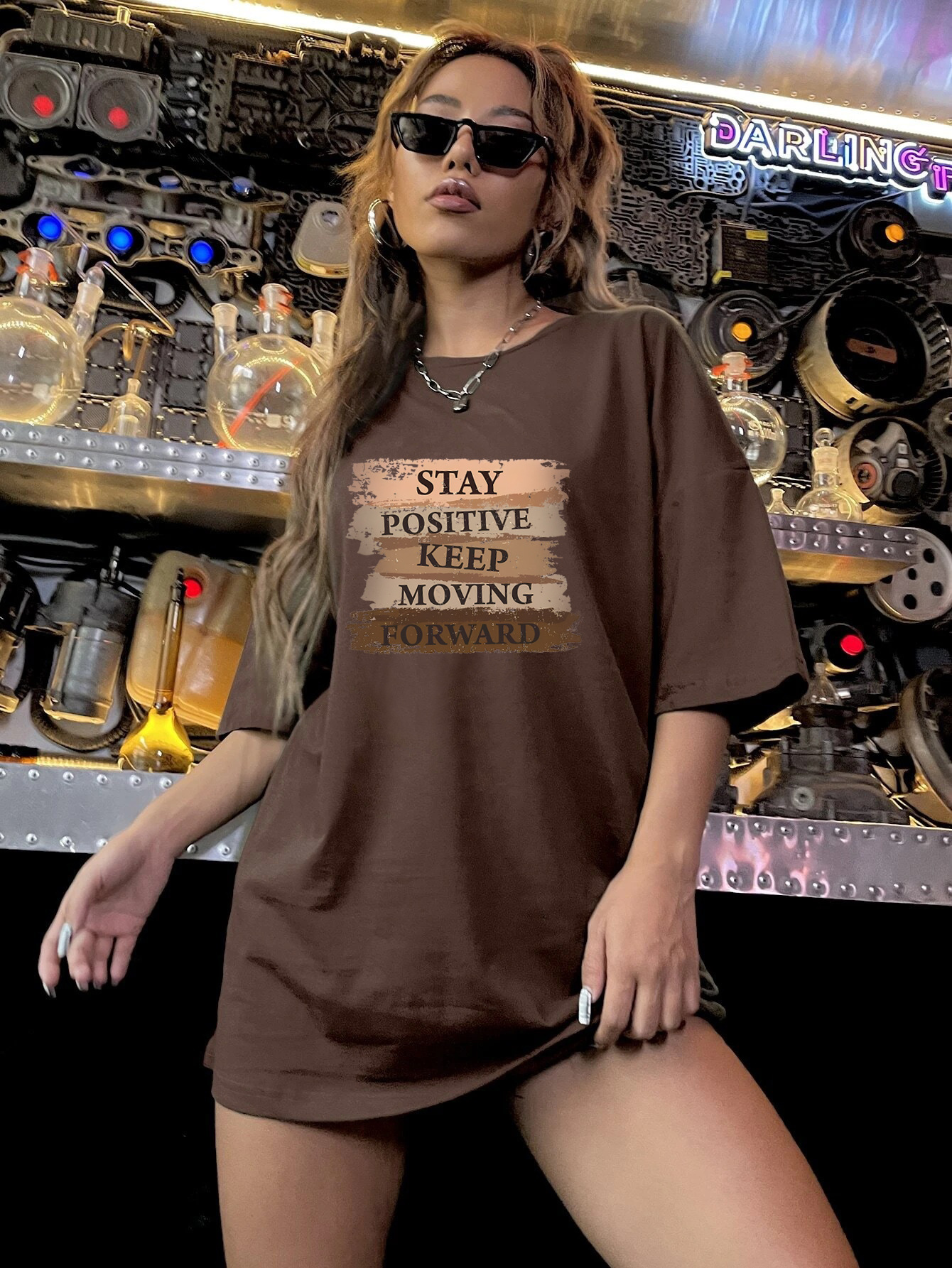 تيشرت فضفاض بأكمام قصيرة وياقة دائرة للنساء