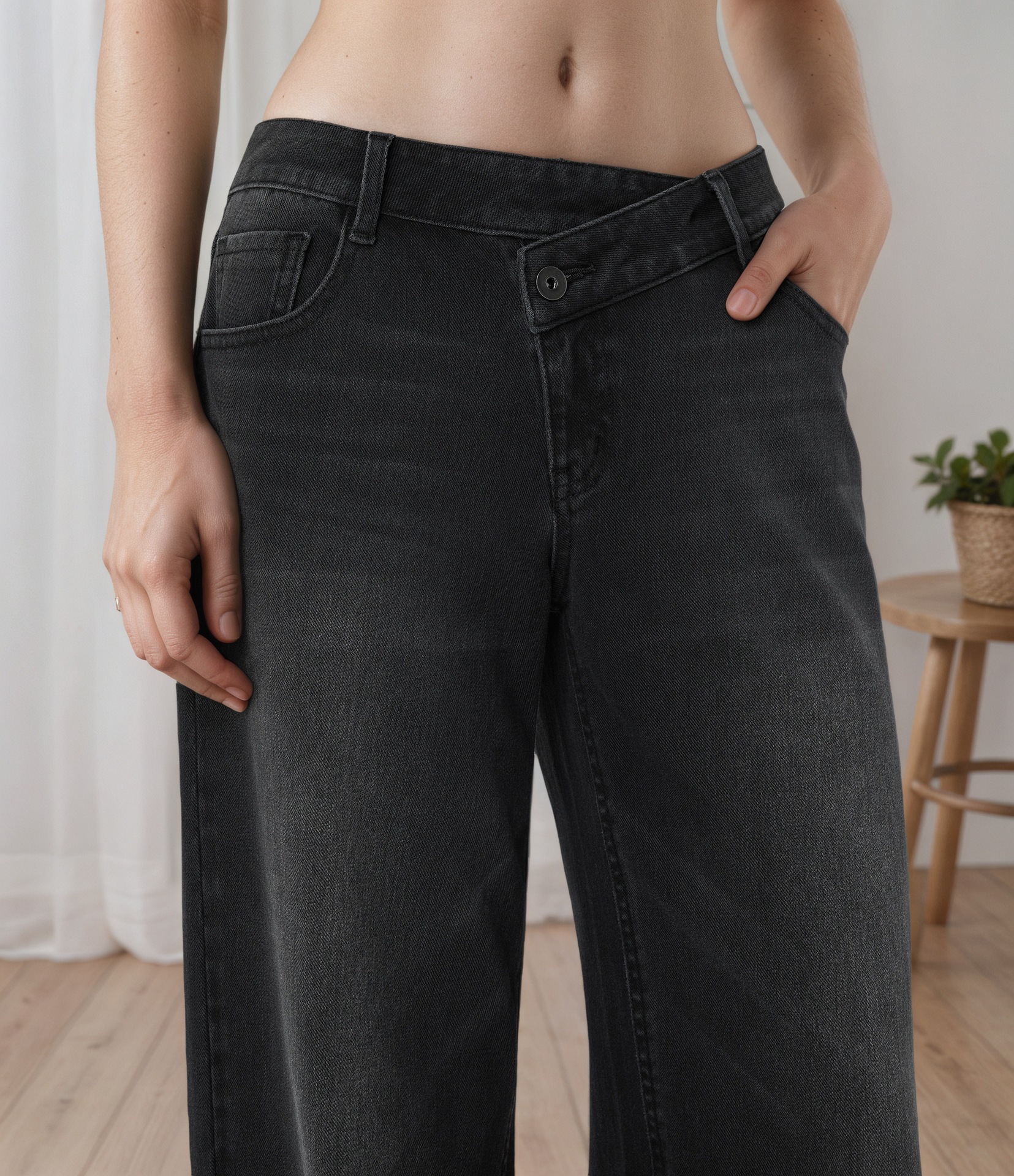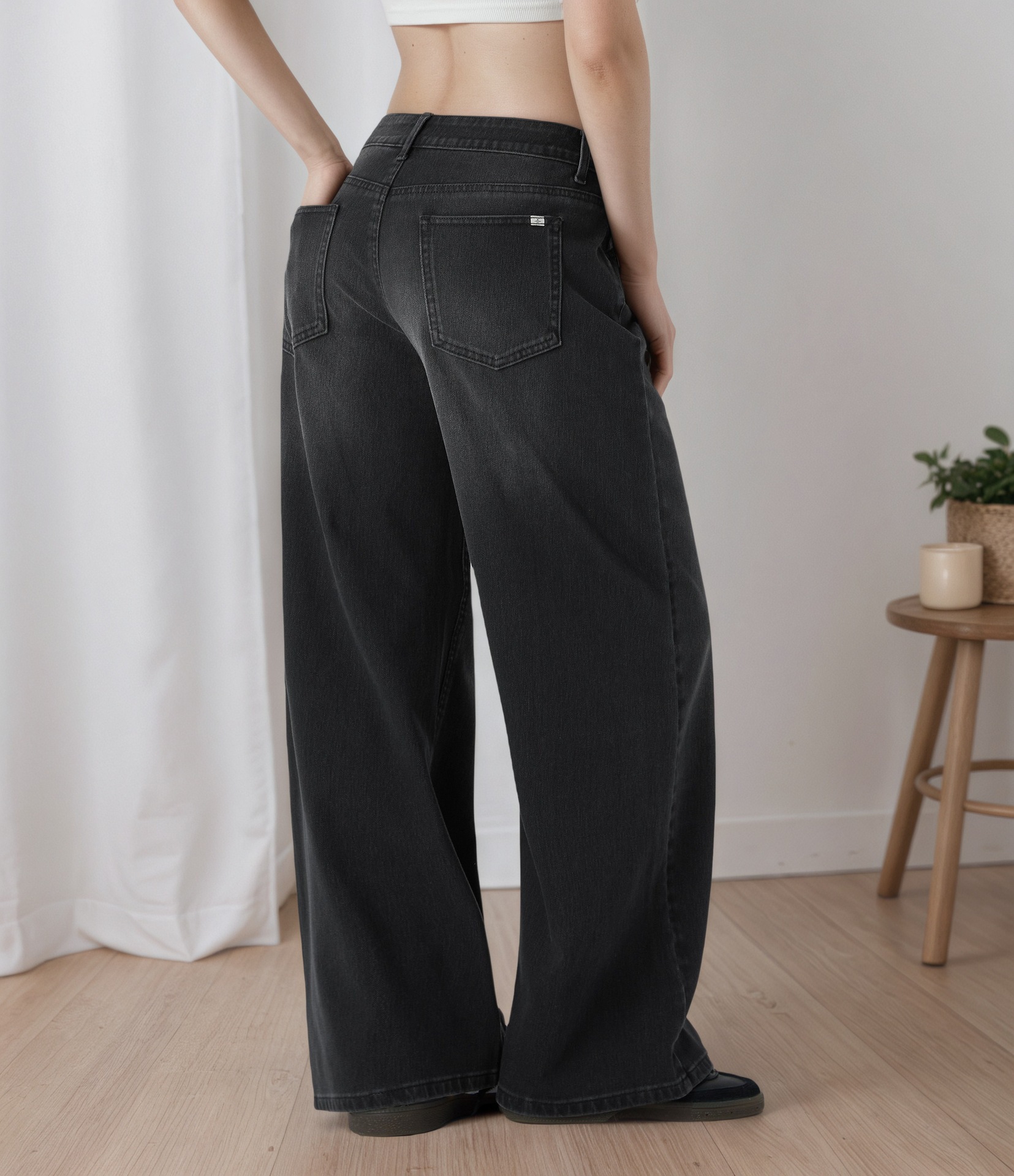 جينز فضفاض وواسع الساقين مناسب لإطلالة عصرية