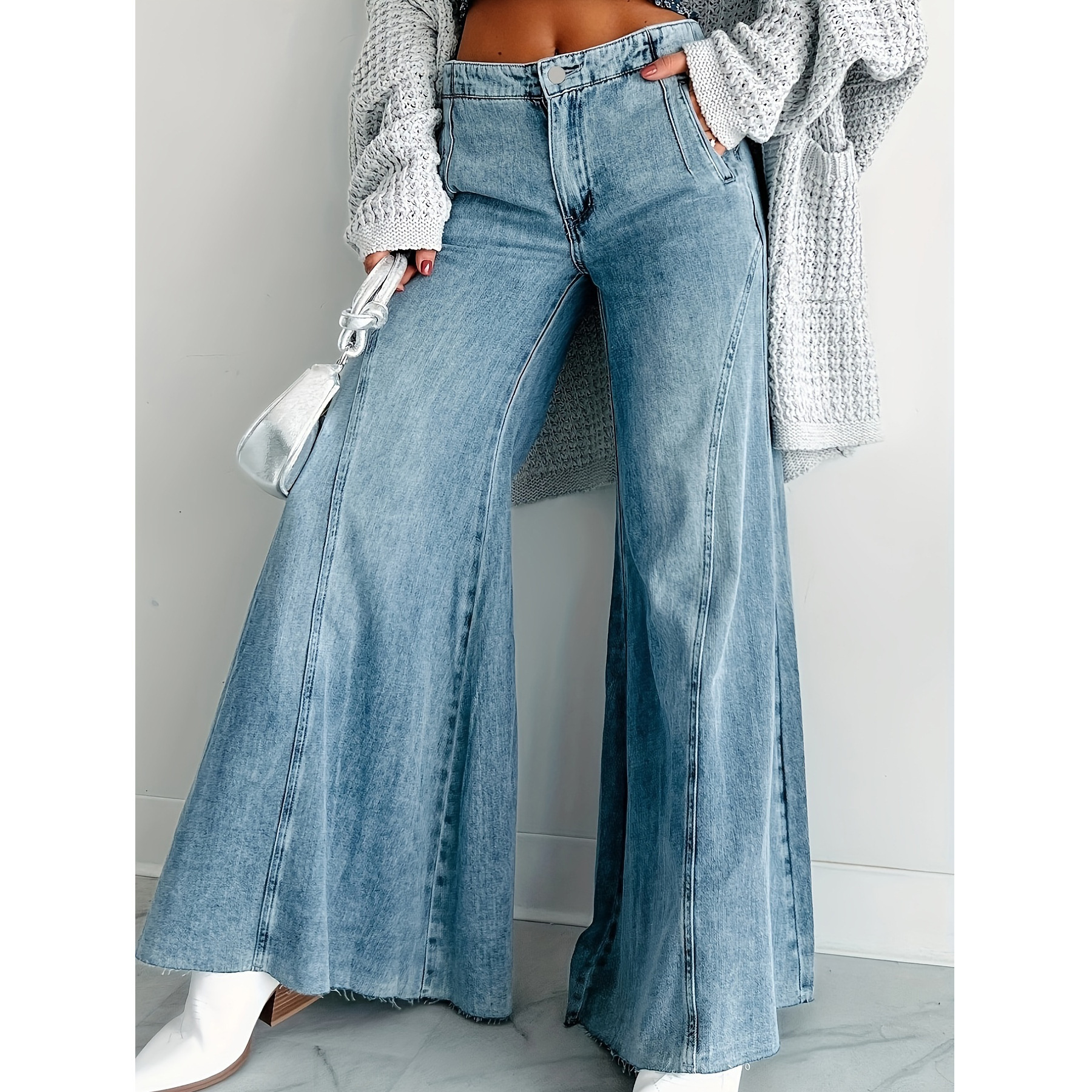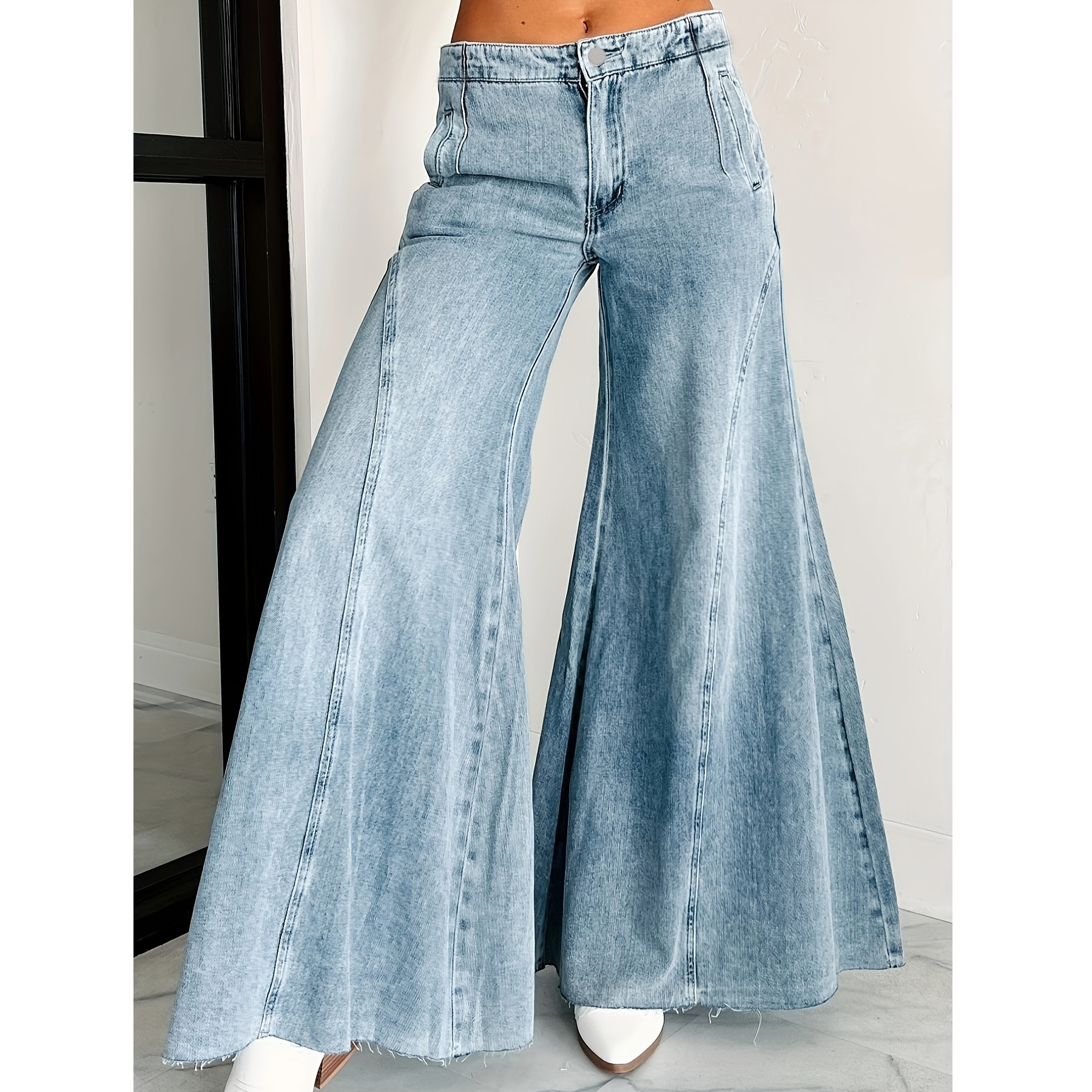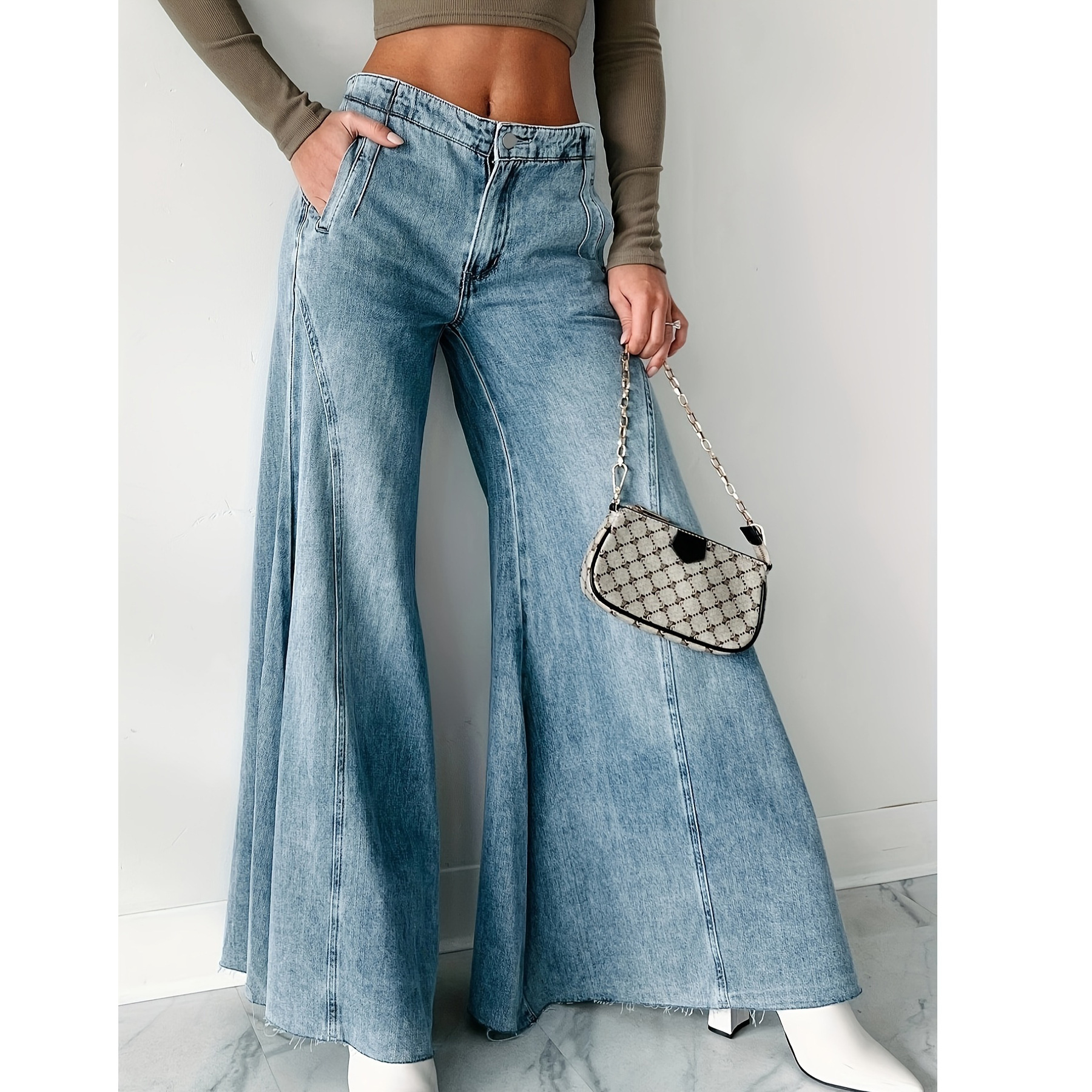 بنطلون جينز خصر مرتفع وساقين واسعة للنساء