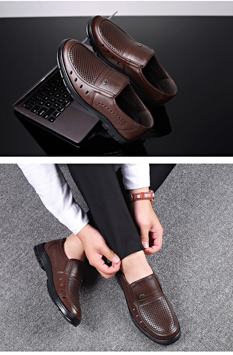 حذاء رسمي من الجلد الطبيعي مجوف ومقاوم يسمح بالتهوية للرجال