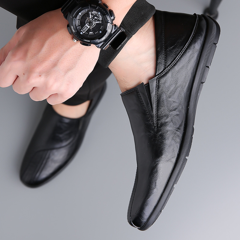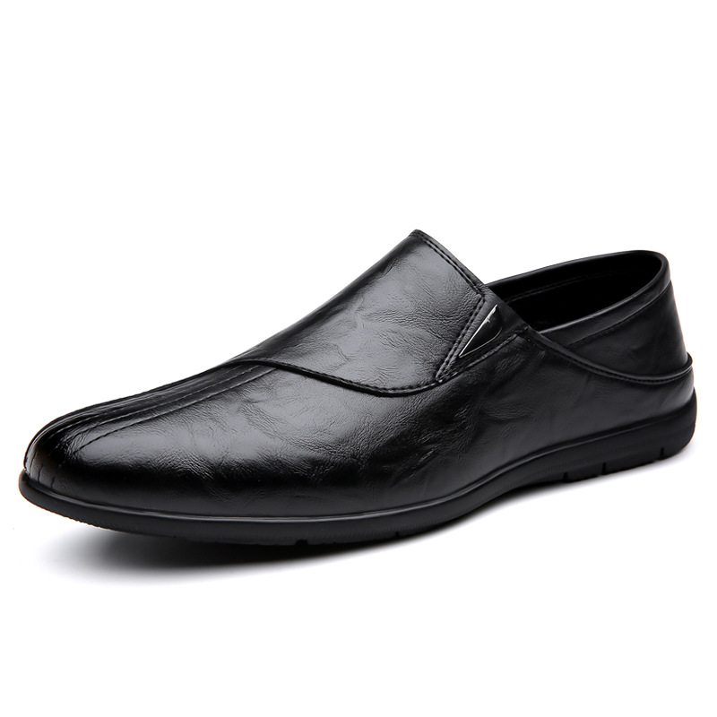 حذاء رسمي من الجلد الصناعي مسطح وبرأس مستدير للرجال