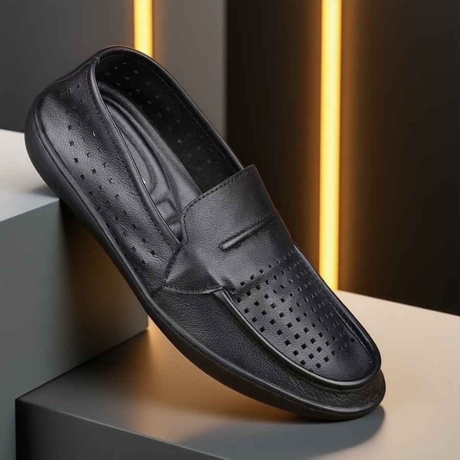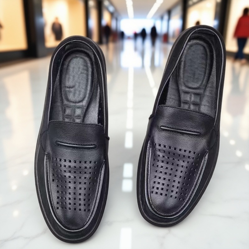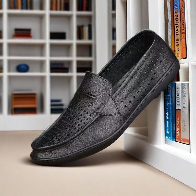 أحذية من الجلد الطبيعي مسطحة وخفيفة الوزن وسهلة الارتداء بنعل ناعم للرجال