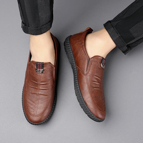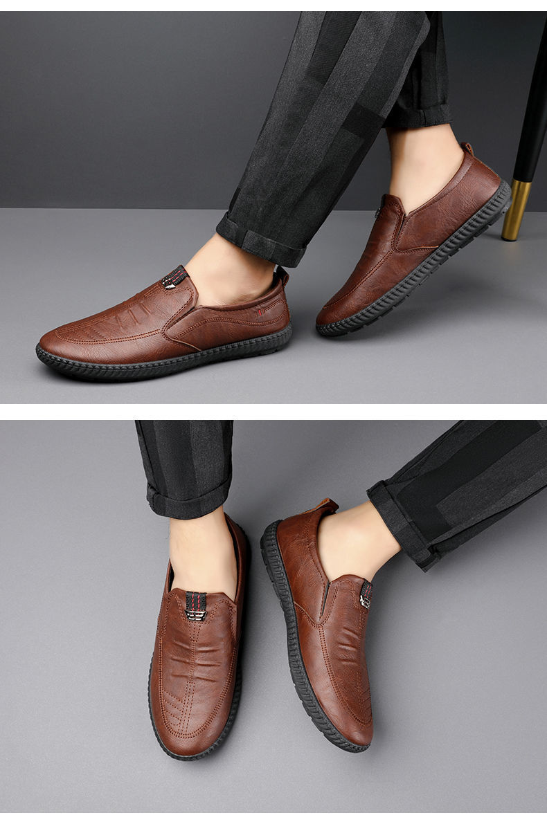 أحذية جلدية مسطحة ذات نعل ناعم مانعة للإنزلاق للرجال