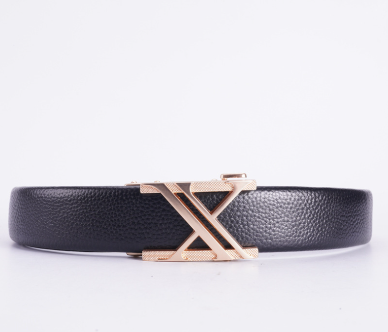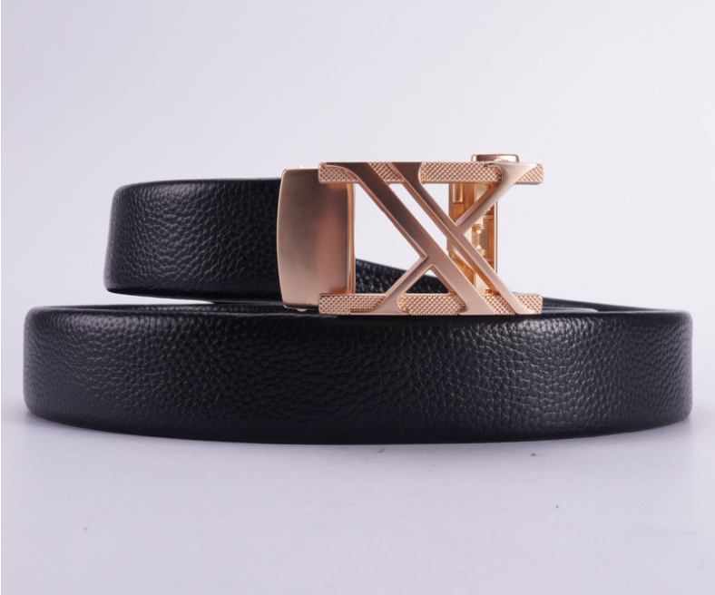 حزام فاخر من الجلد الطبيعي بإبزيم أوتوماتيكي هندسي للرجال