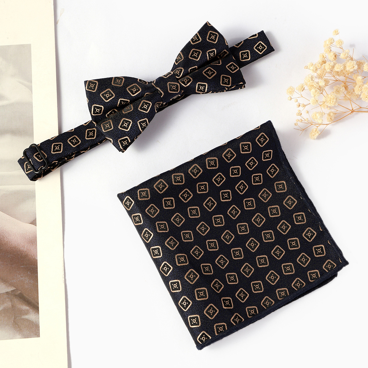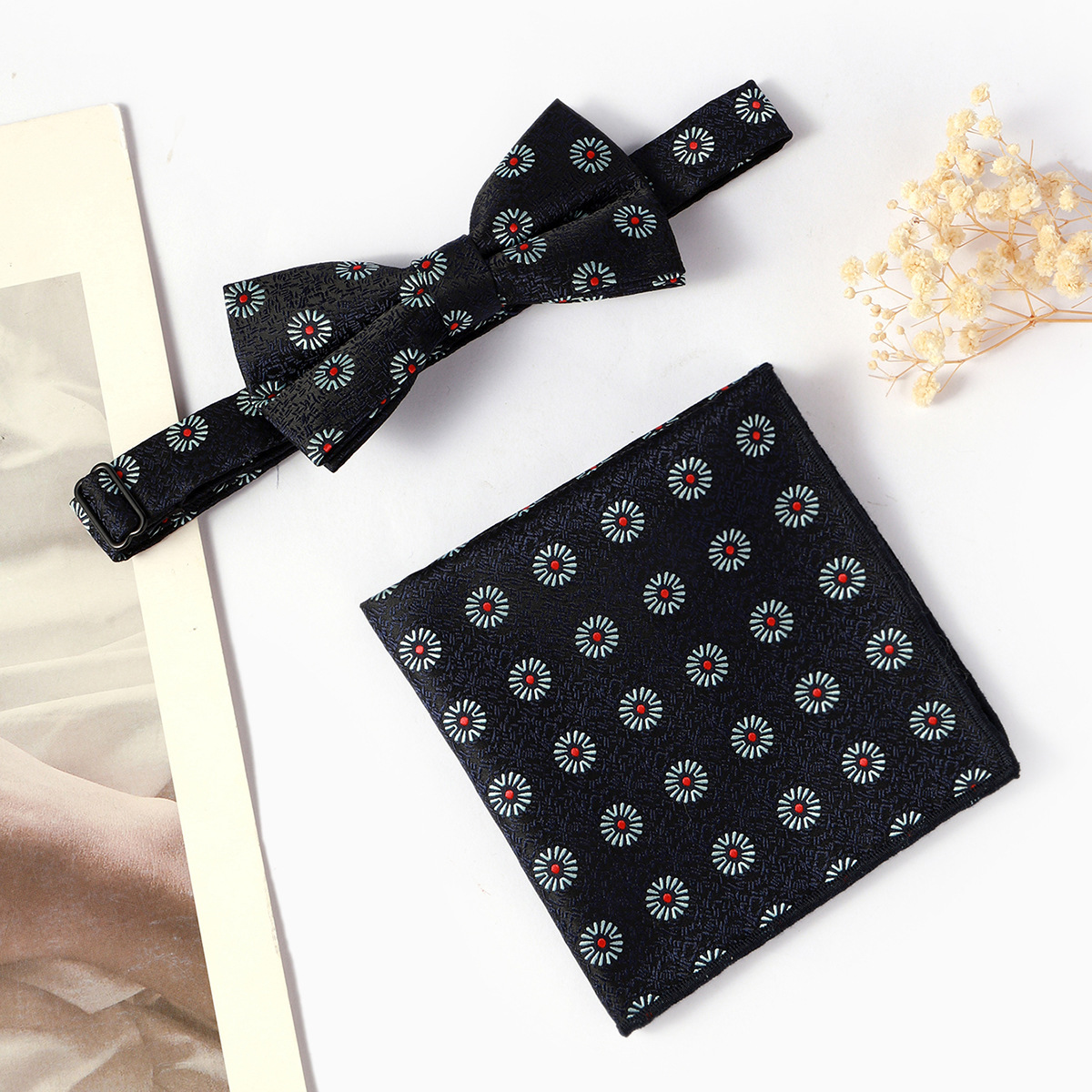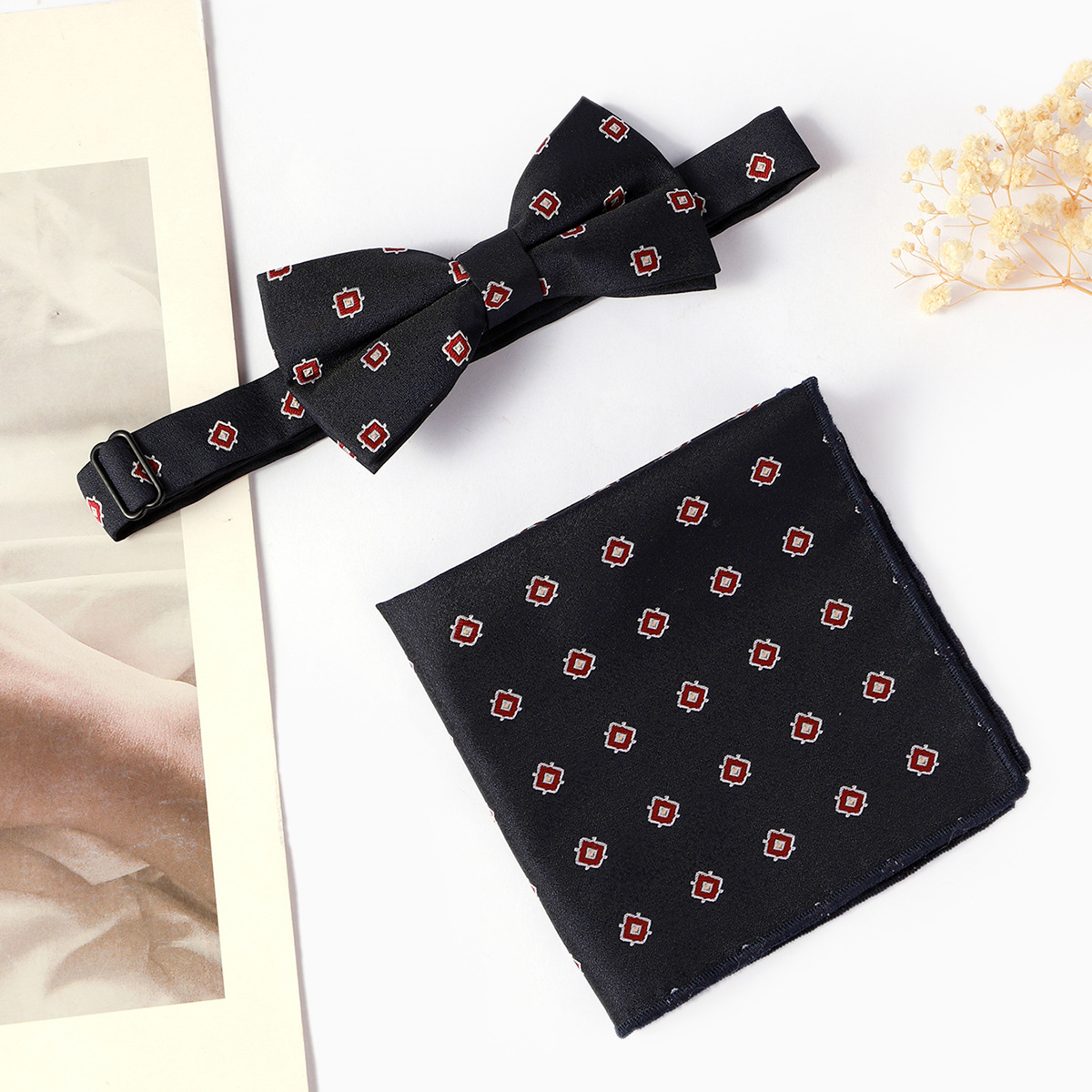 طقم ربطة عنق وربطة جيب من قماش البوليستر للرجال