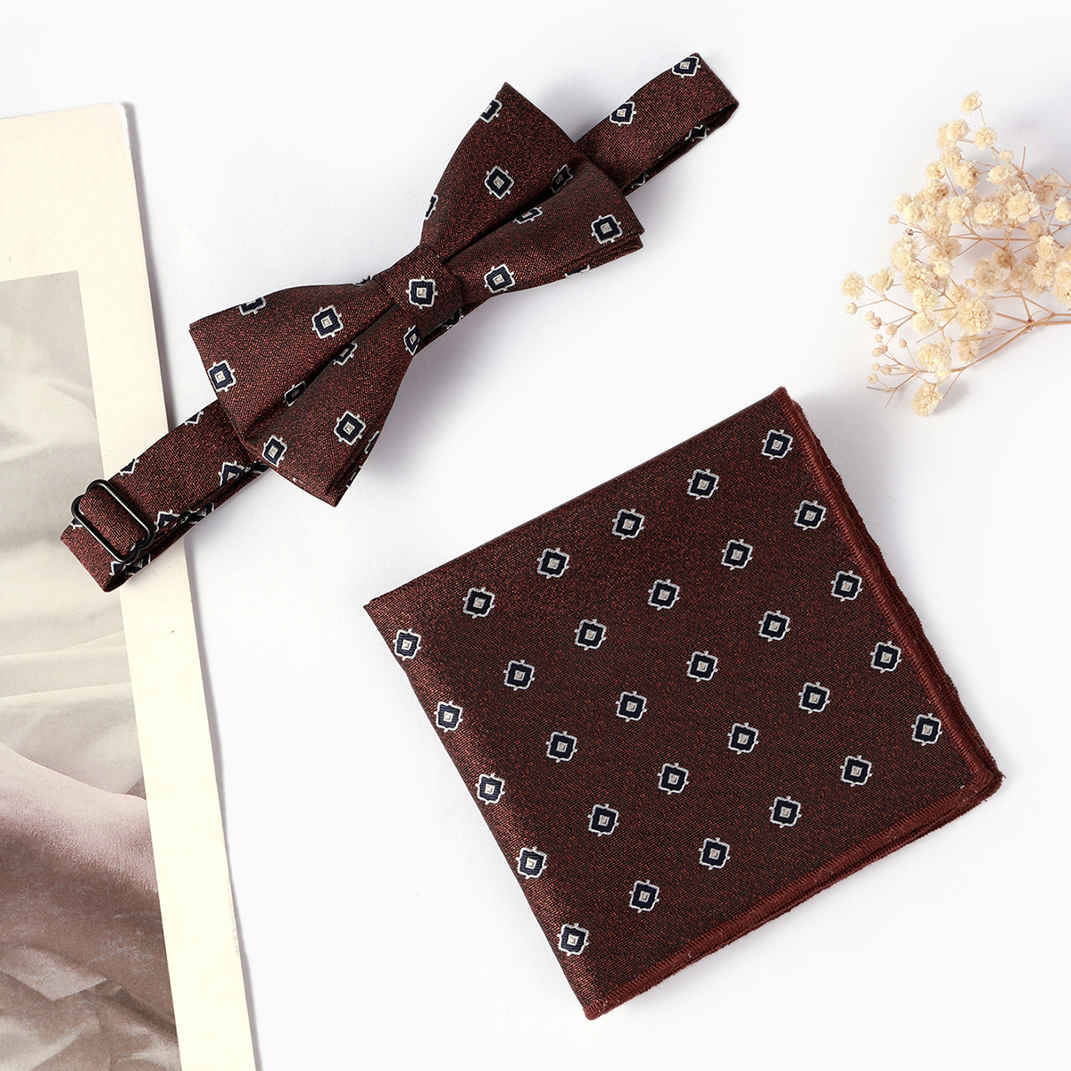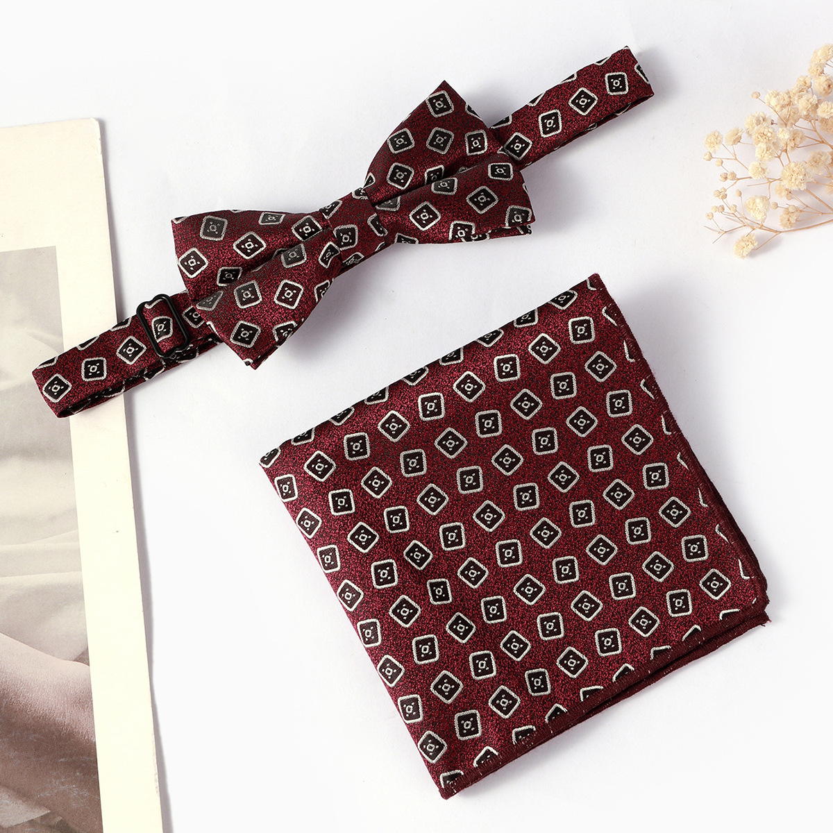 ربطة عنق مع منديل للجيب من البوليستر المنقوش بتفاصيل دقيقة ولمسة أنيقة للرجال