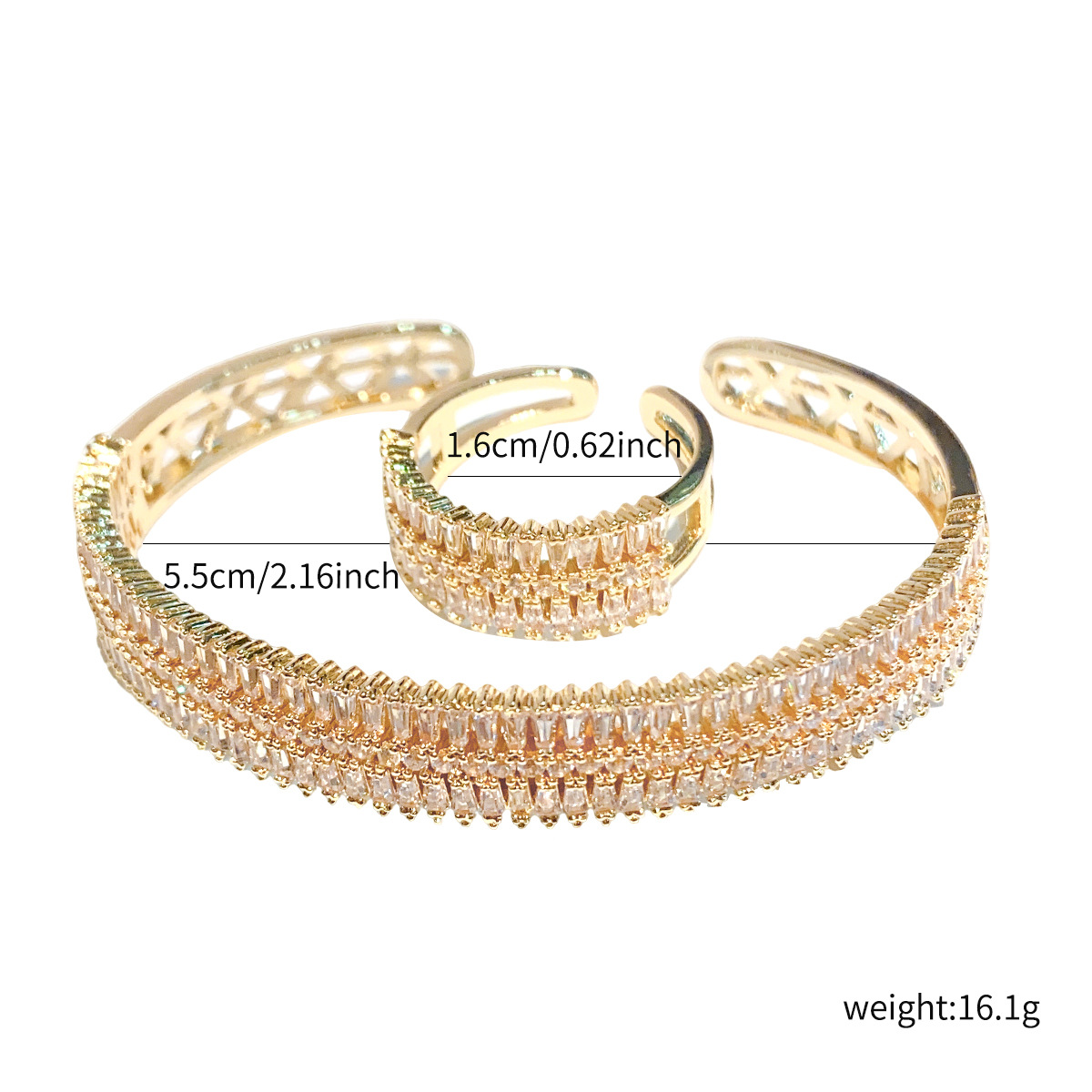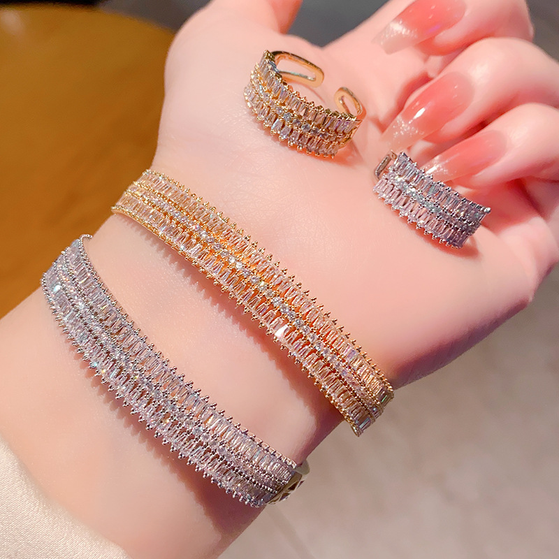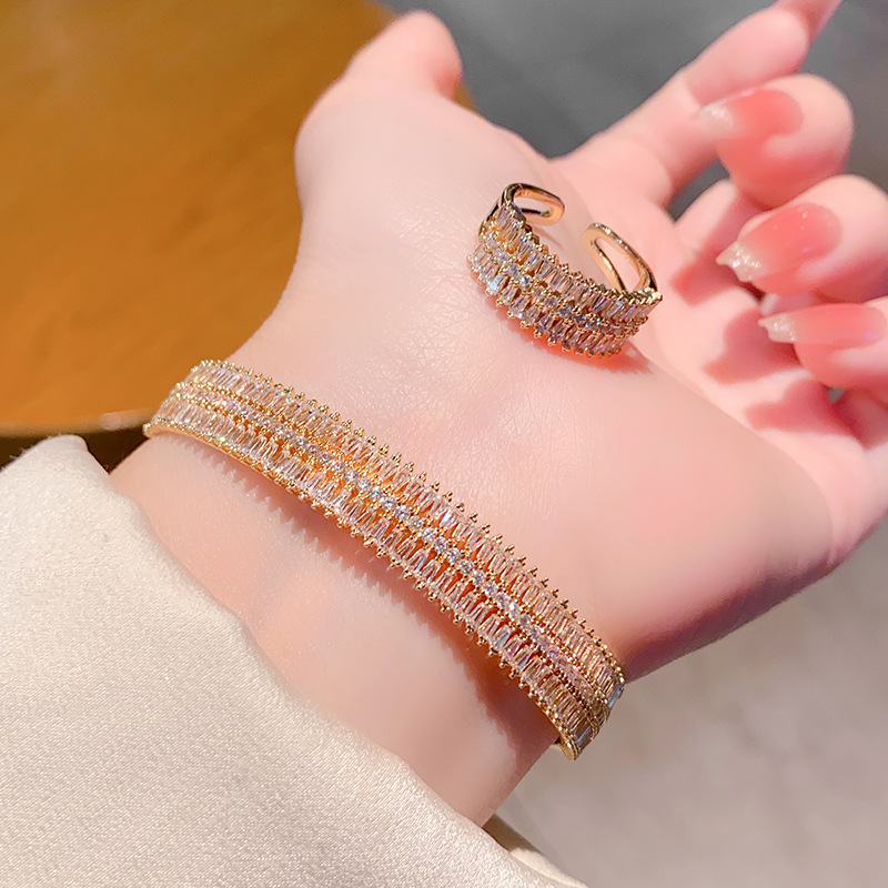خاتم مع سوار من الألماس مرصع بالزركون بتقنية الميكرو للنساء