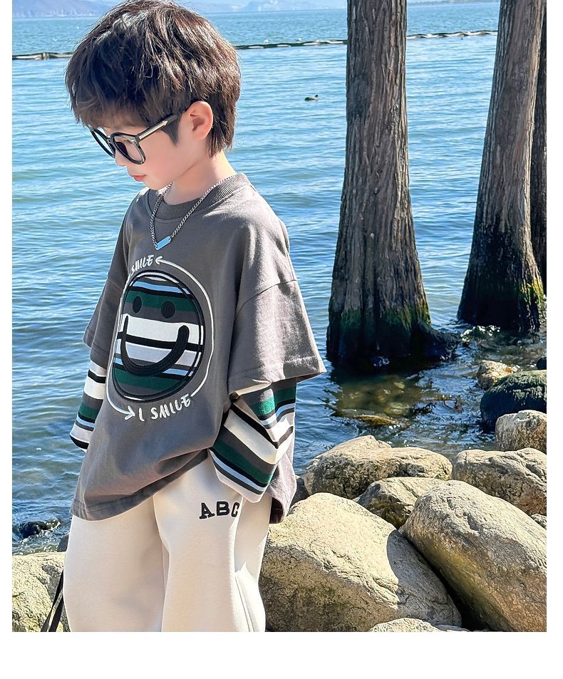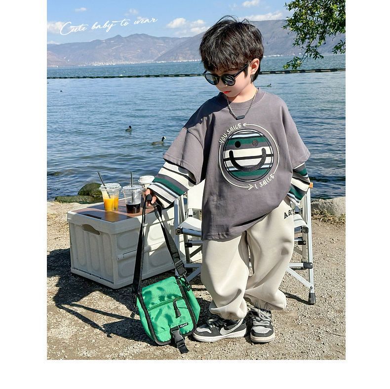 طقم بتصميم أنيق وواسع مكون من تيشيرت مكمم مع بنطال طويل مناسب للاستخدام اليومي للأولاد