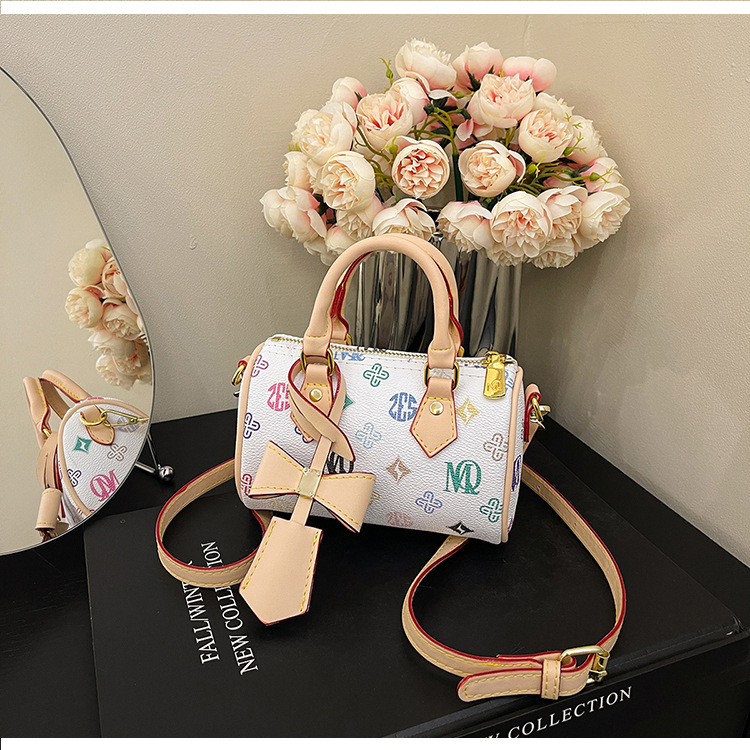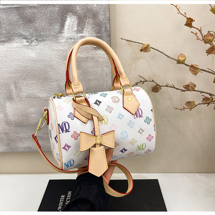 حقيبة كتف مطبعة بأشكال متعددة وشكل أسطواني للسيدات