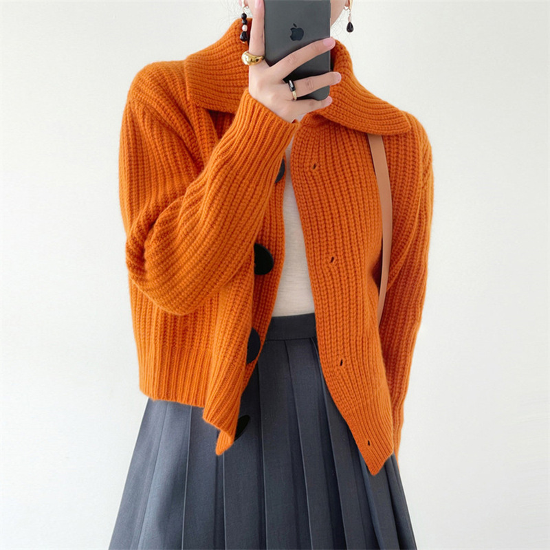 معطف محبوك بياقة كلاسكية وأزرار أمامية كبيرة للسيدات