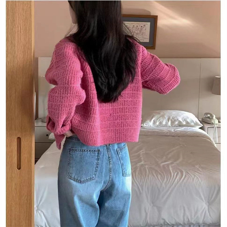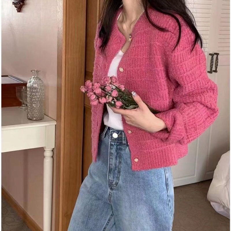 معطف خريفي مخطط محبوك بأزرار أمامية للسيدات