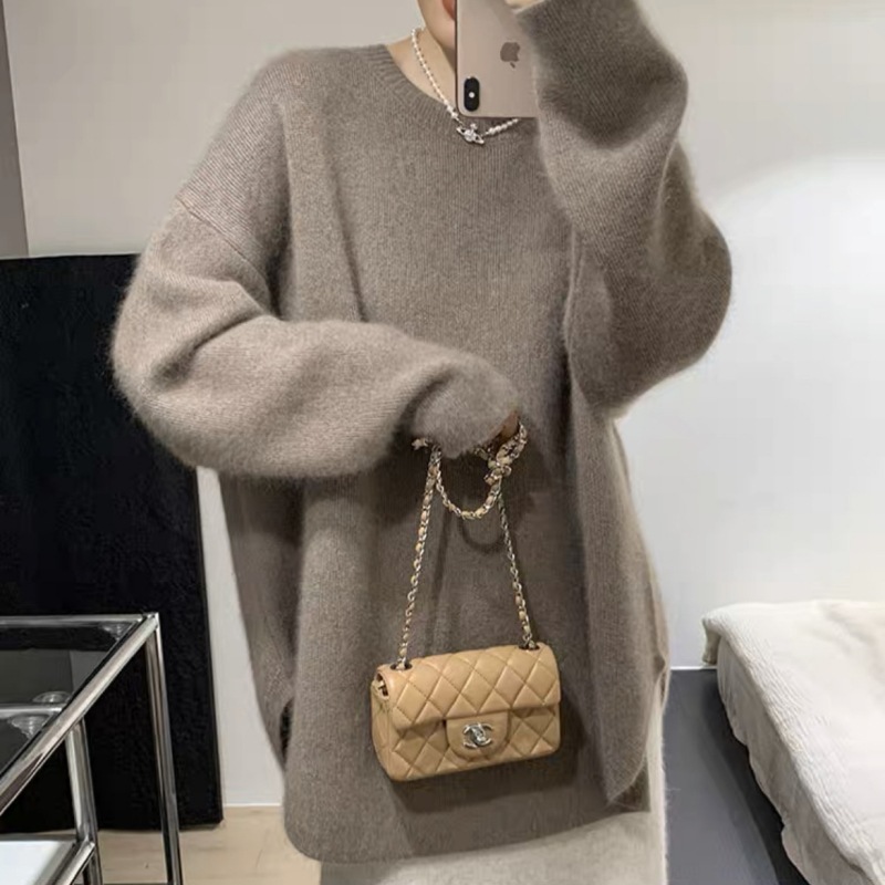 كنزة صوفية محبوكة متوسطة الطول بلون موحد للسيدات