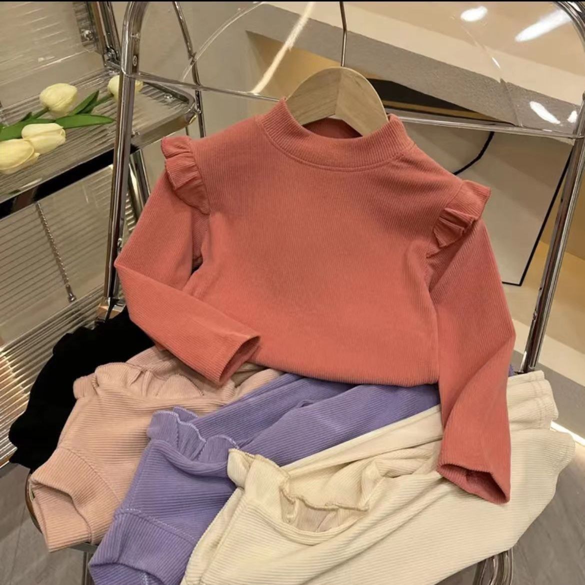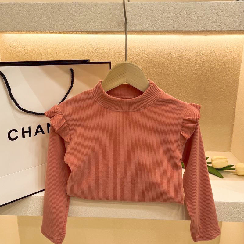 بلوزة خريفية بأكمام طويلة وياقة عالية من قماش البوليستر للفتيات
