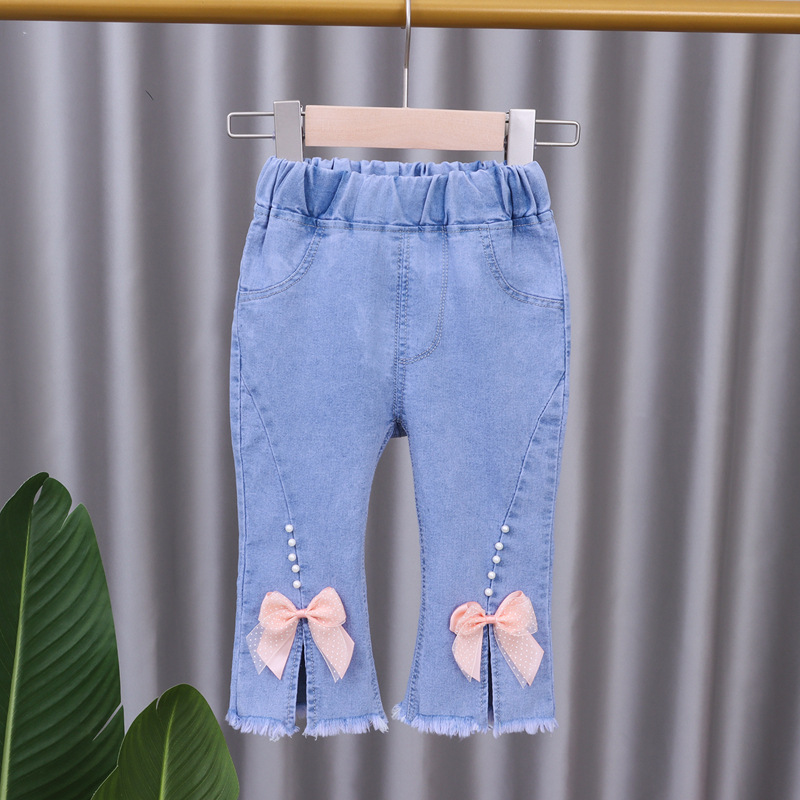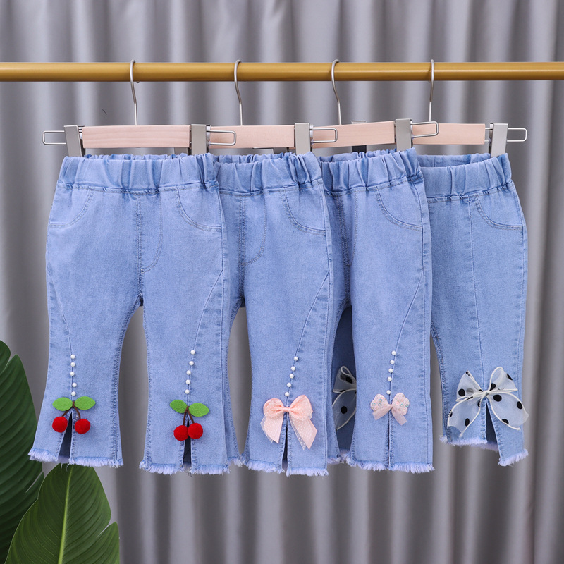 بنطلون جينز بتصميم صيفي من القطن الناعم للفتيات