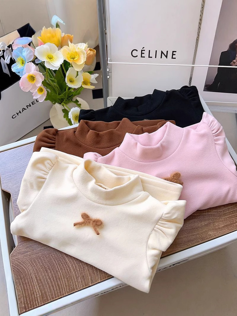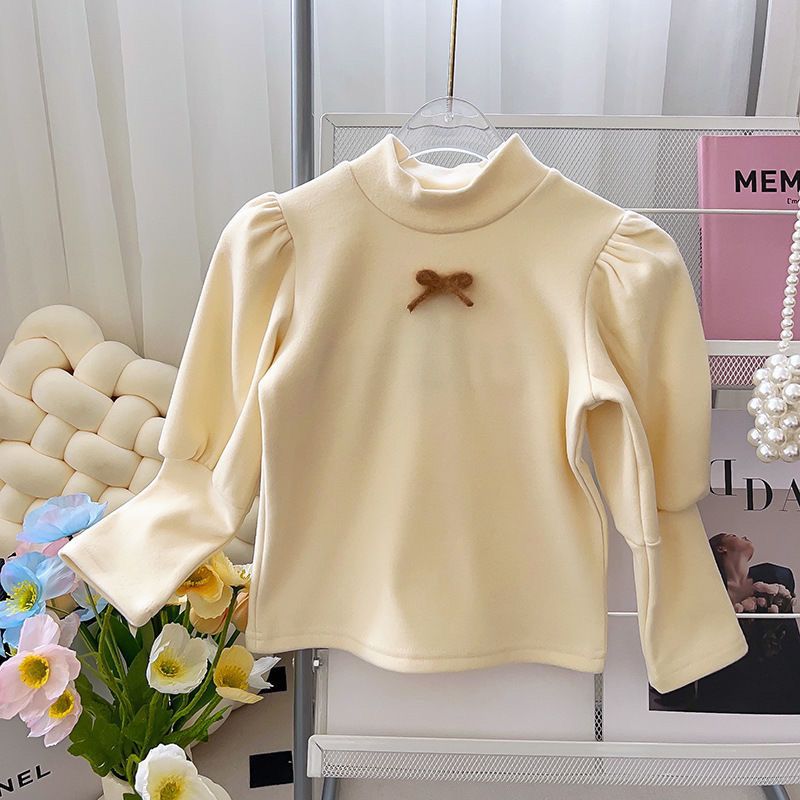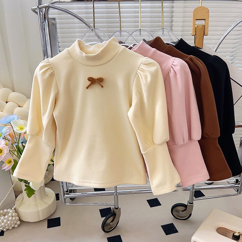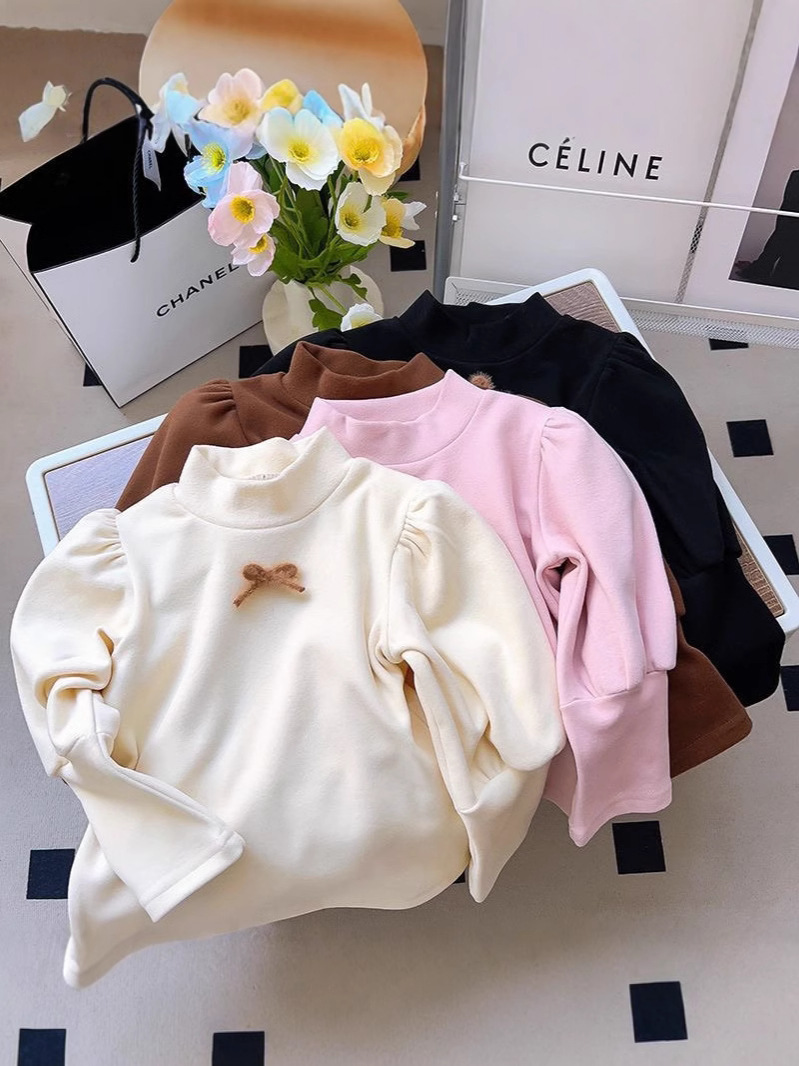 فنيلة بأكمام منفوخة وياقة عالية بلون سادة للفتيات