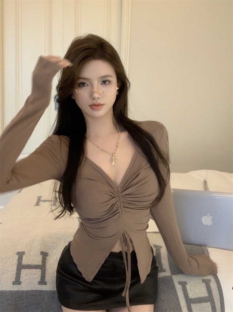 تيشيرت أنيق وجذاب بأكمام طويلة واسعة وخصر مطوي برباط مطاط للسيدات