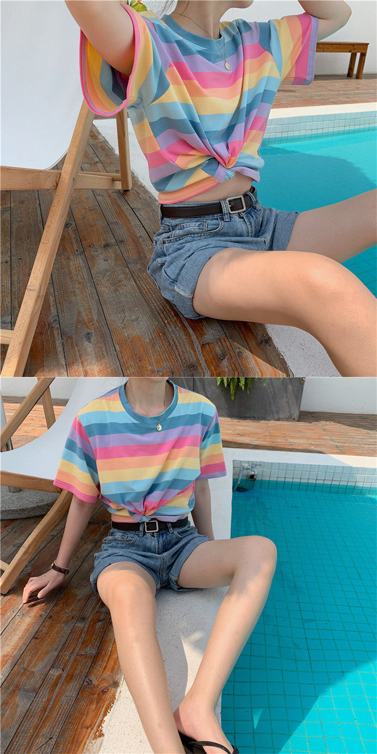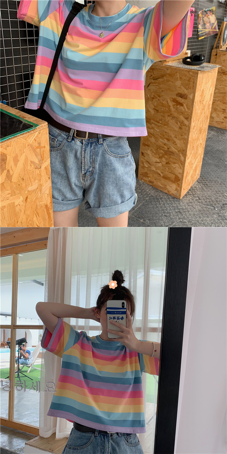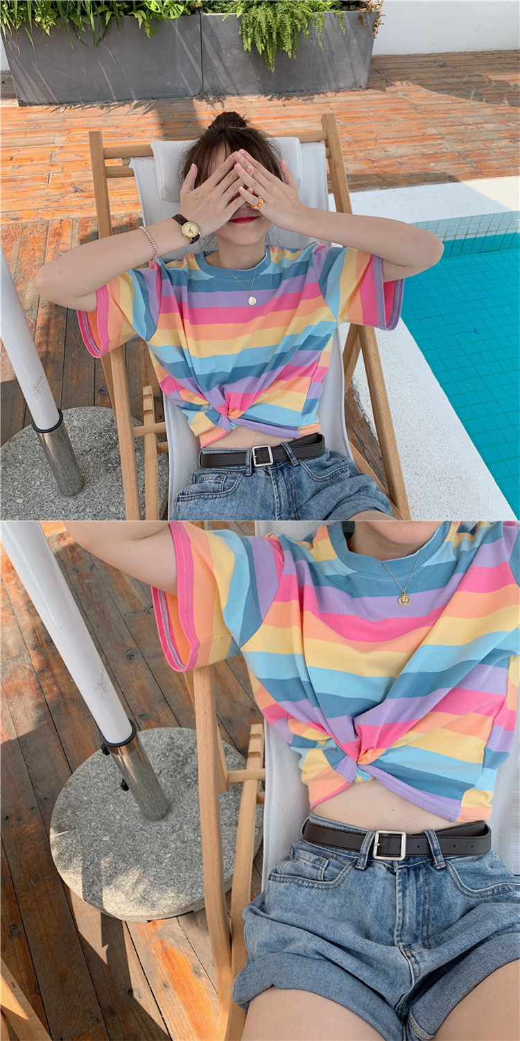 تيشيرت صيفي قصير وبأكمام قصيرة مخطط للسيدات