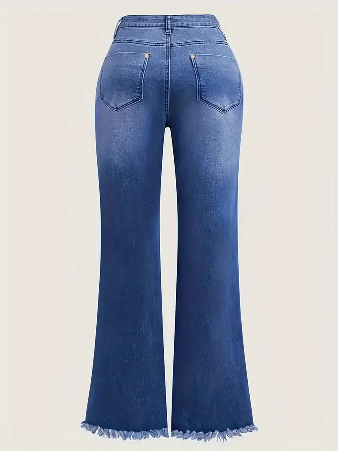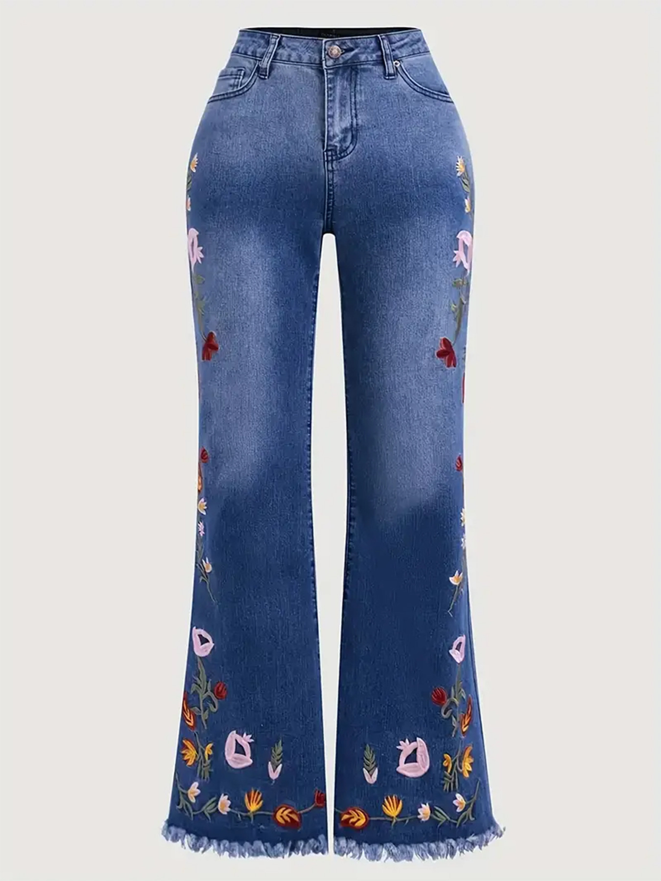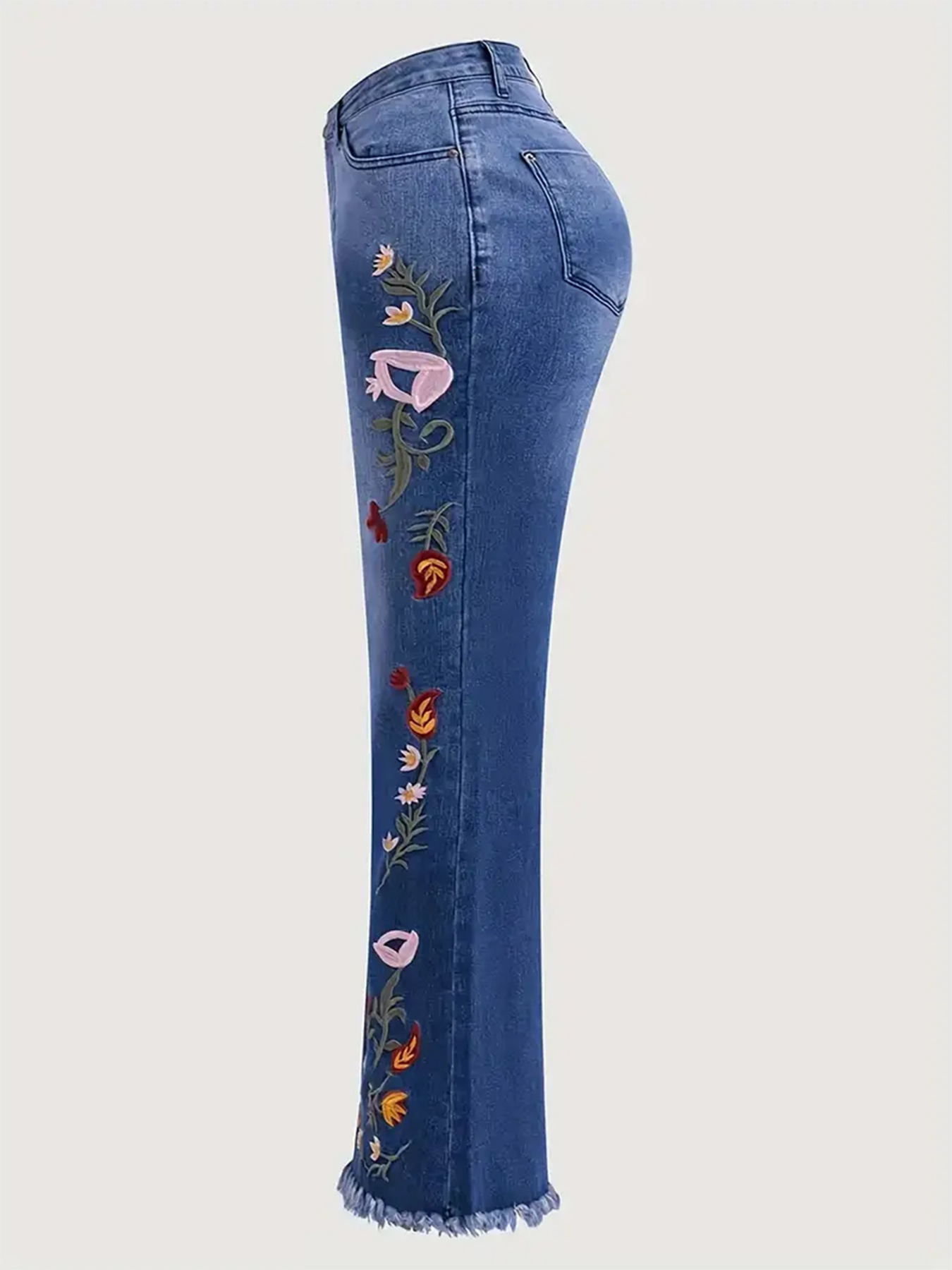 بنطلون جينز بخصر عالٍ، مطاطي، مطرز للسيدات