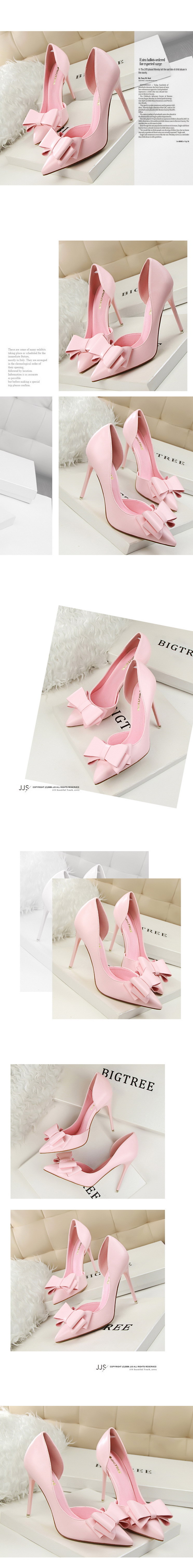 حذاء كعب عالي وفيونكة في مقدمة القدم بلون سادة للسيدات