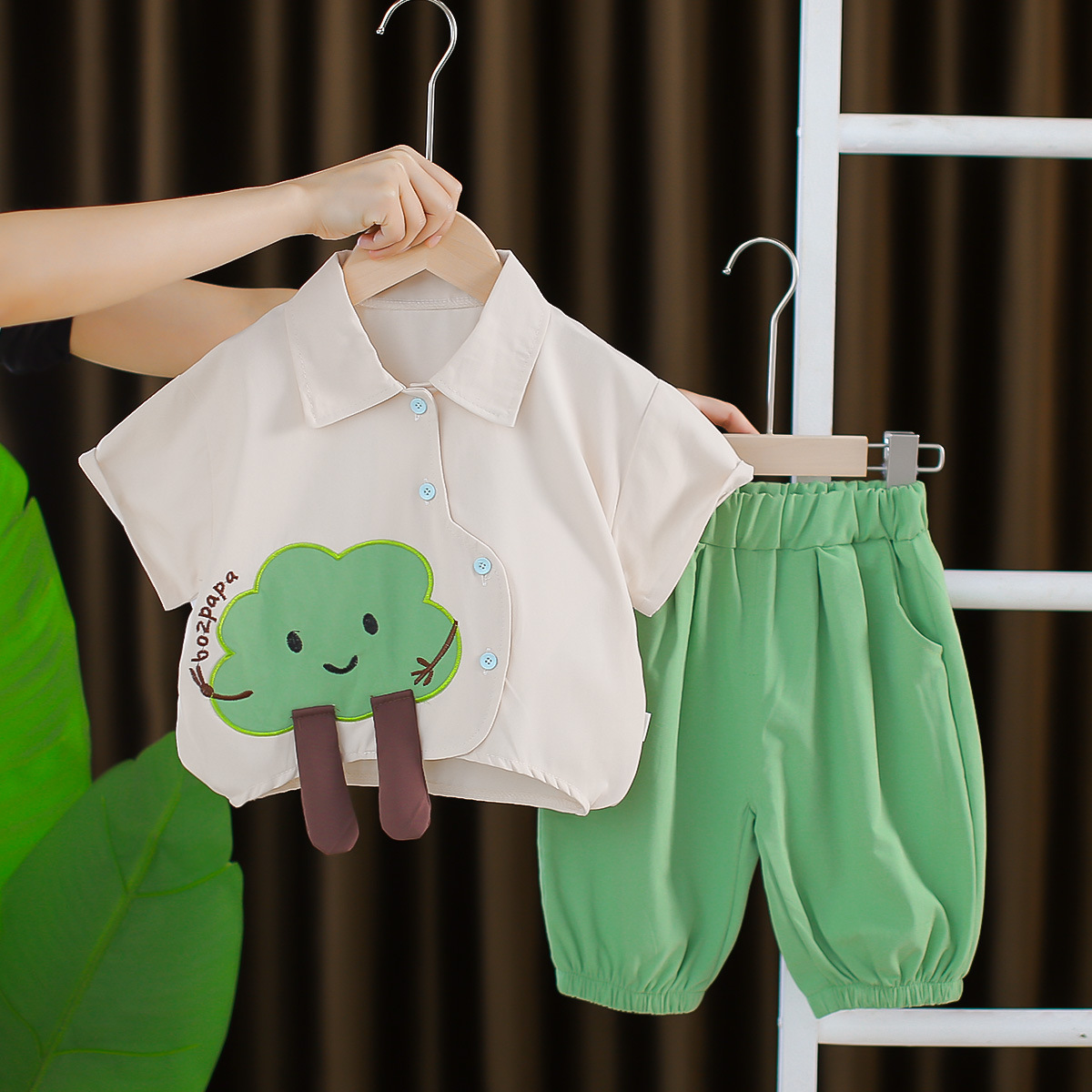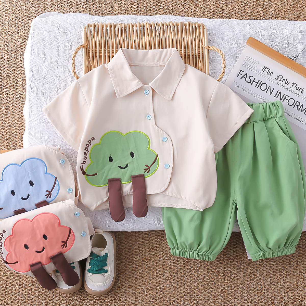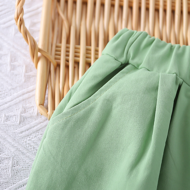 طقم صيفي بقميص كارتوني وشورت سادة قصير للفتيات المواليد