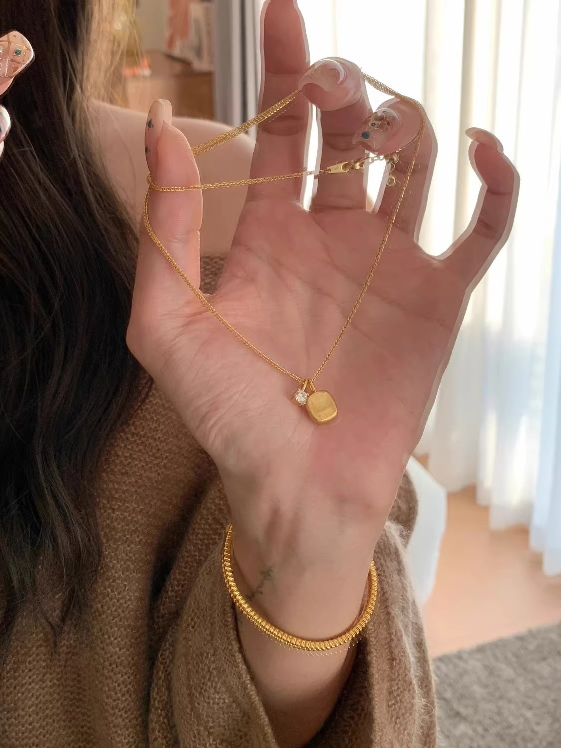 قلادة نسائية صغيرة على شكل مكعب سكر، قلادة خفيفة فاخرة عالية الجودة