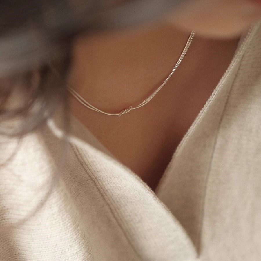 قلادة مزدوجة الطبقات على شكل انفنتي، قلادة بتصميم أنثوي بسيط بلون فاخر