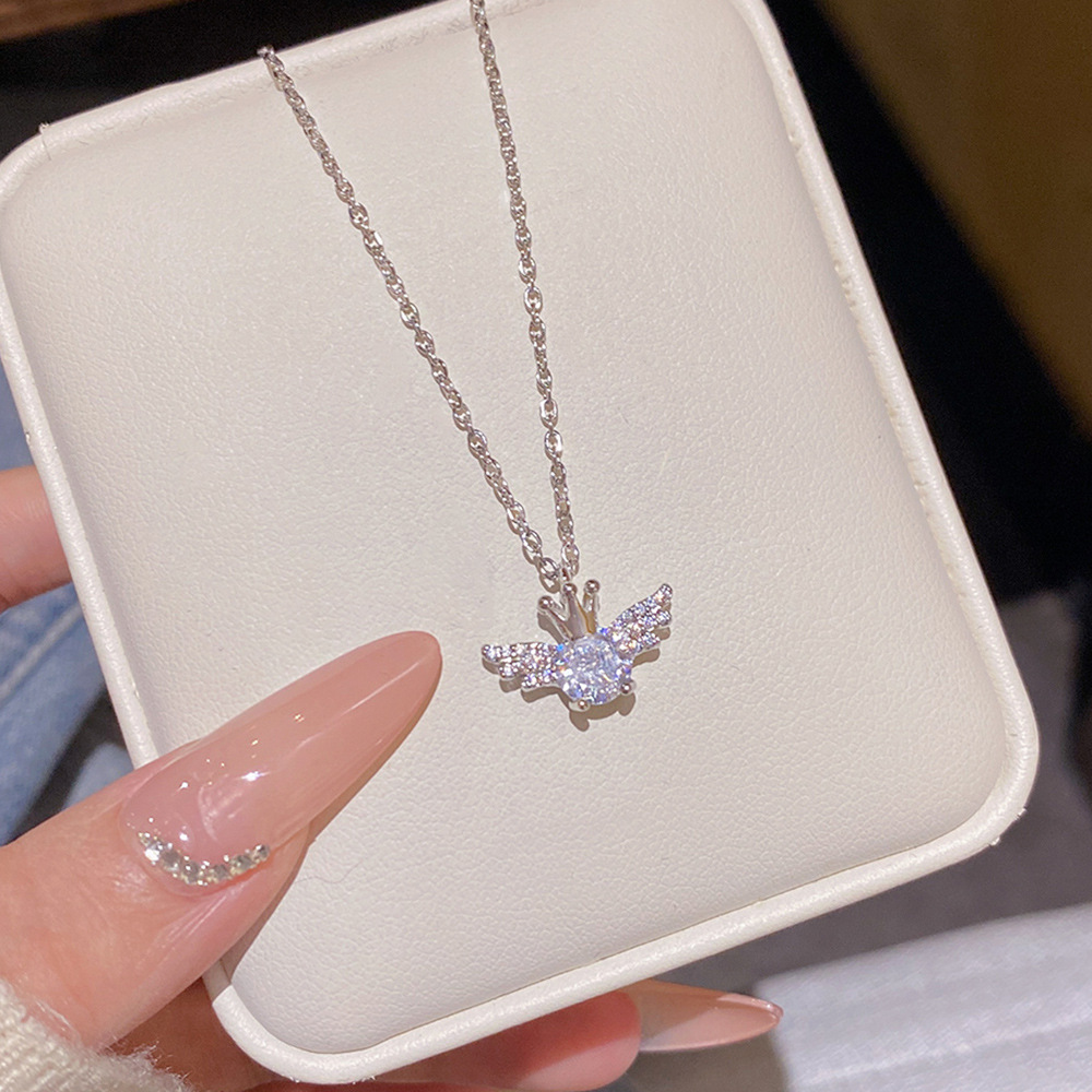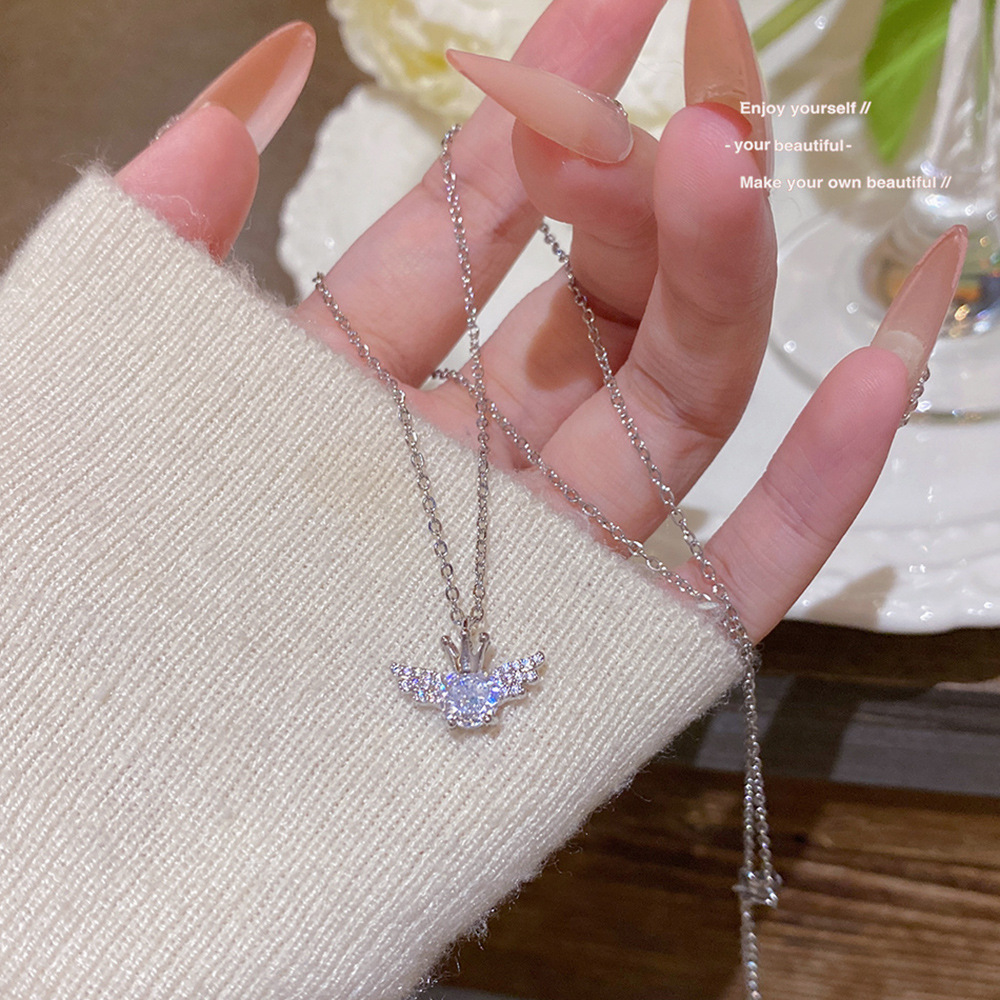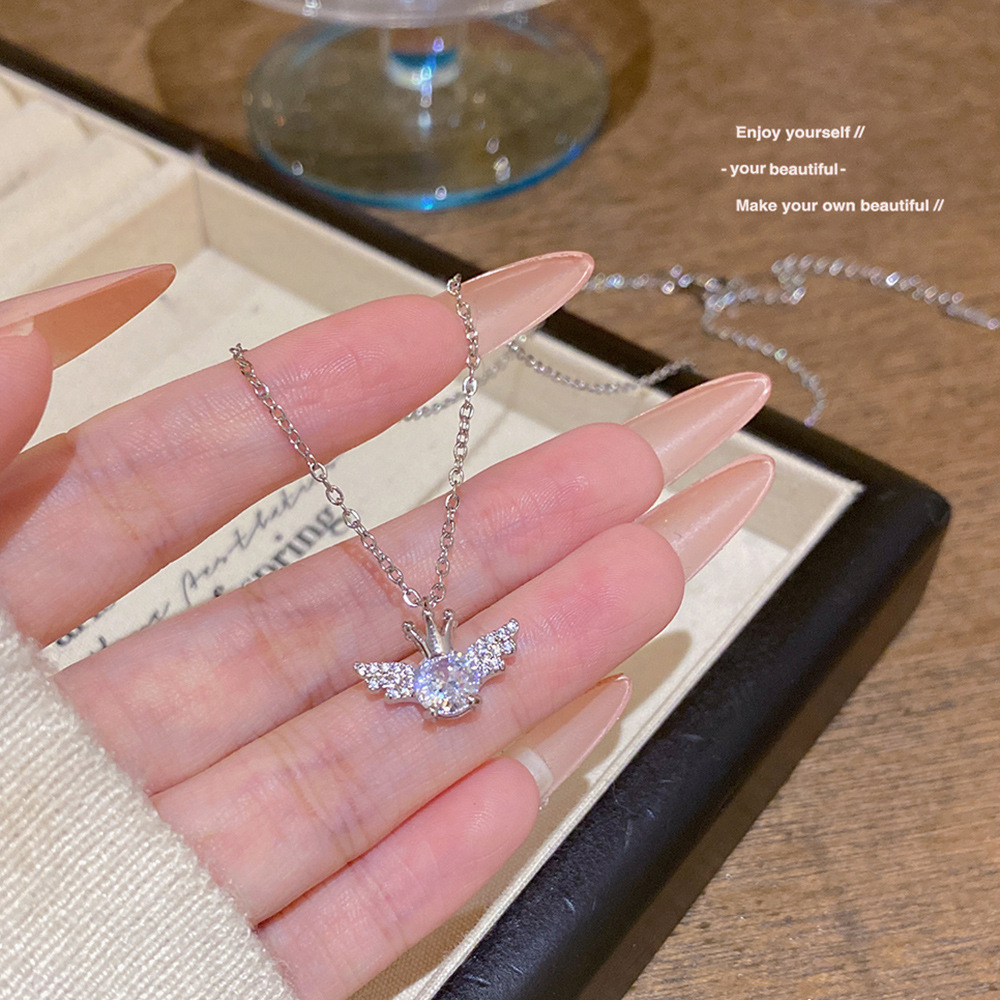 قلادة على شكل تاج وجناح ملاك فاخر وخفيف الوزن، قلادة نسائية تناسب جميع الأذواق