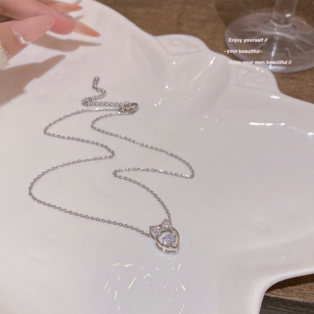 قلادة على شكل قلب و فيونكة حلوة للنساء، قلادة نسائية خفيفة فاخرة عالية الجودة