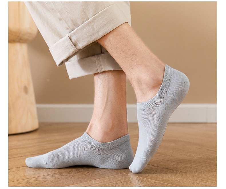جوارب شبكية للرجال قطنية رقيقة مناسبة للصيف، جوارب قصيرة بلون سادة قابلة للتنفس 5 ازواج