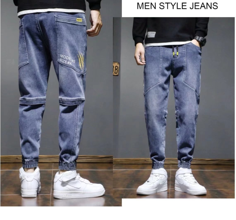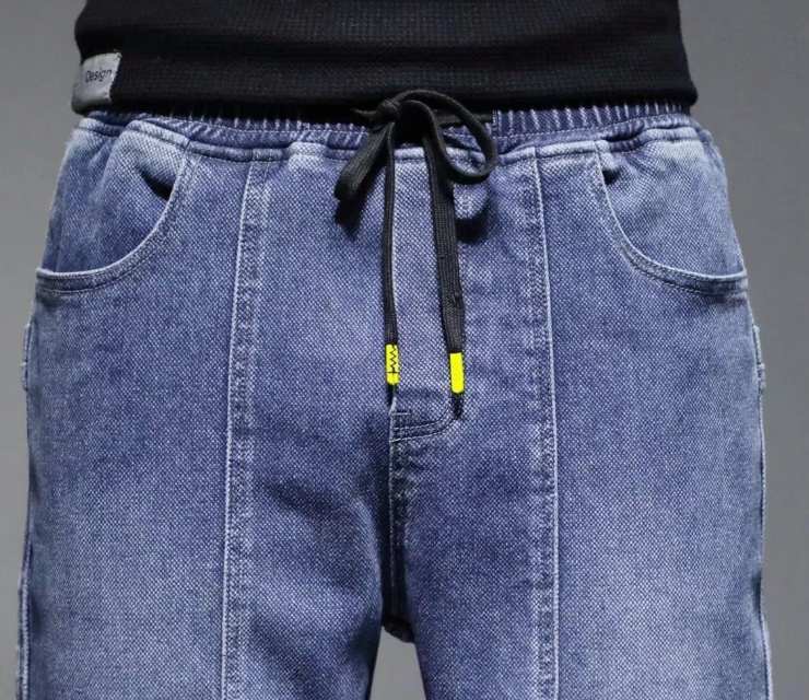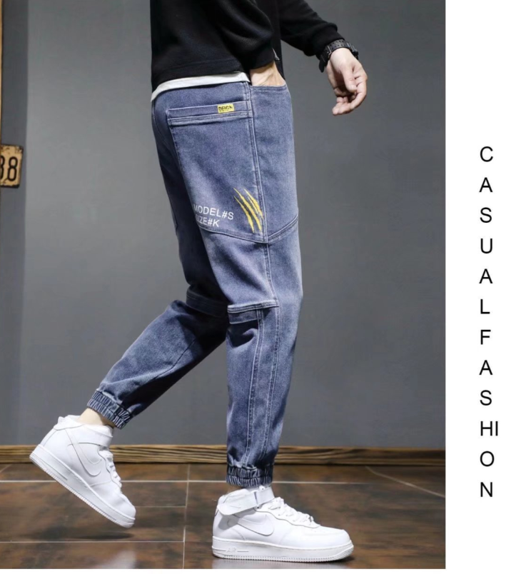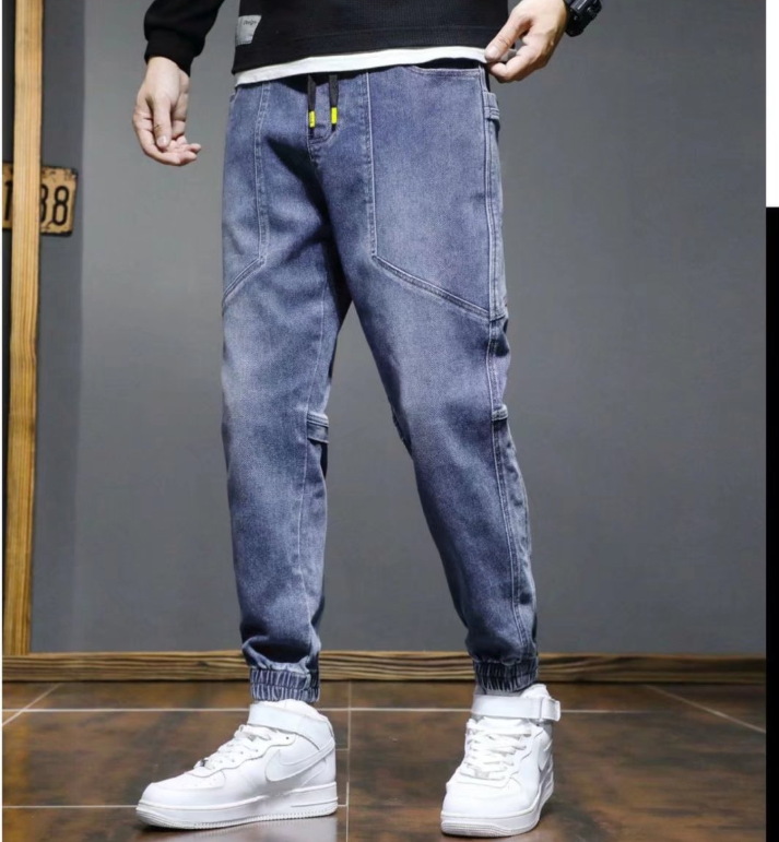 جينز رجالي نمط جديد بخصر مرن فضفاض، بنطلون كاجوال شبابي انيق بجيوب واسعة