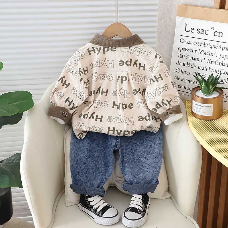 مجموعة ملابس ولادي على الطراز الغربي طقم 3 قطع، طقم كاجوال بجاكيت مزخرف وبنطلون فضفاض