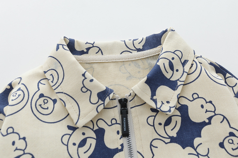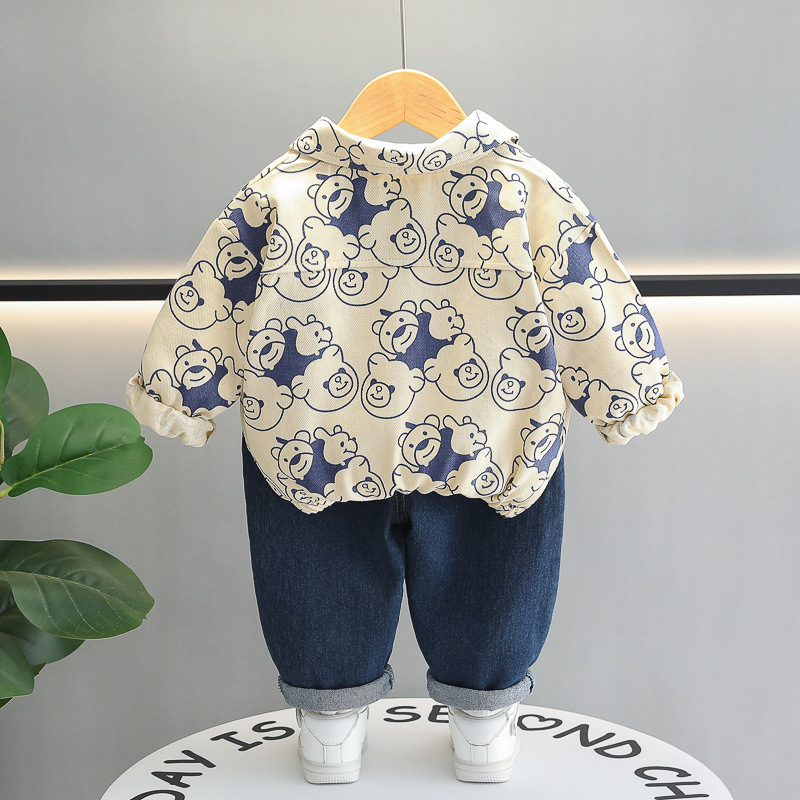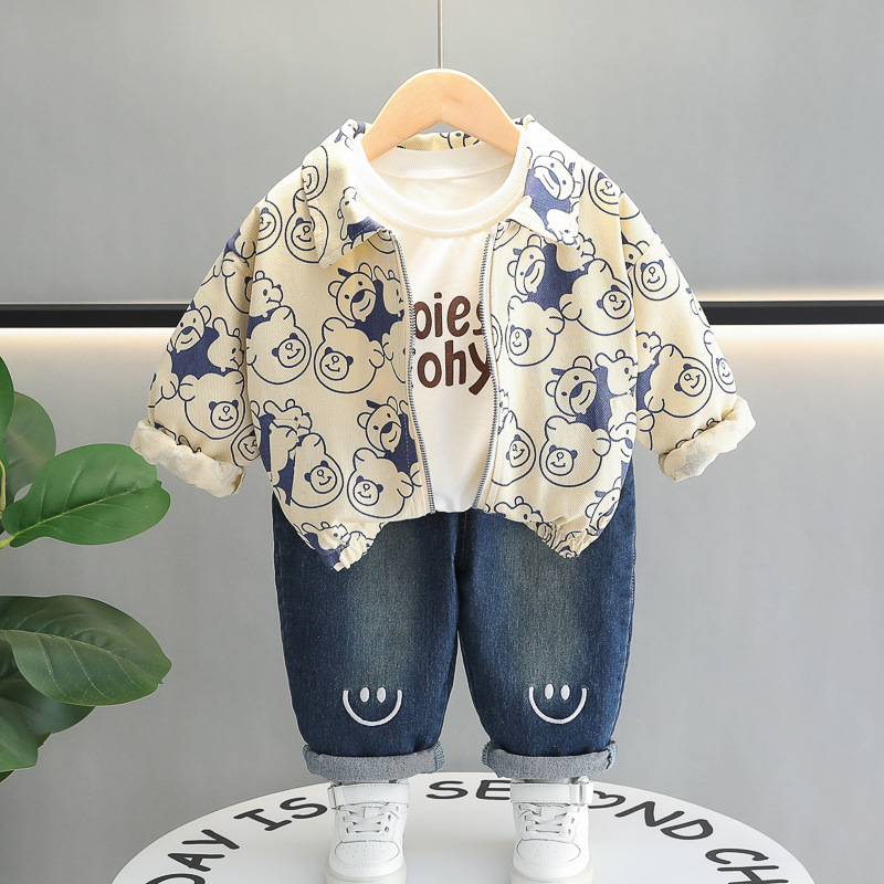 طقم ملابس ولادي بجاكيت مزخرف وتي شيرت انيق، طقم كاجوال مريح من القطن 3 قطع