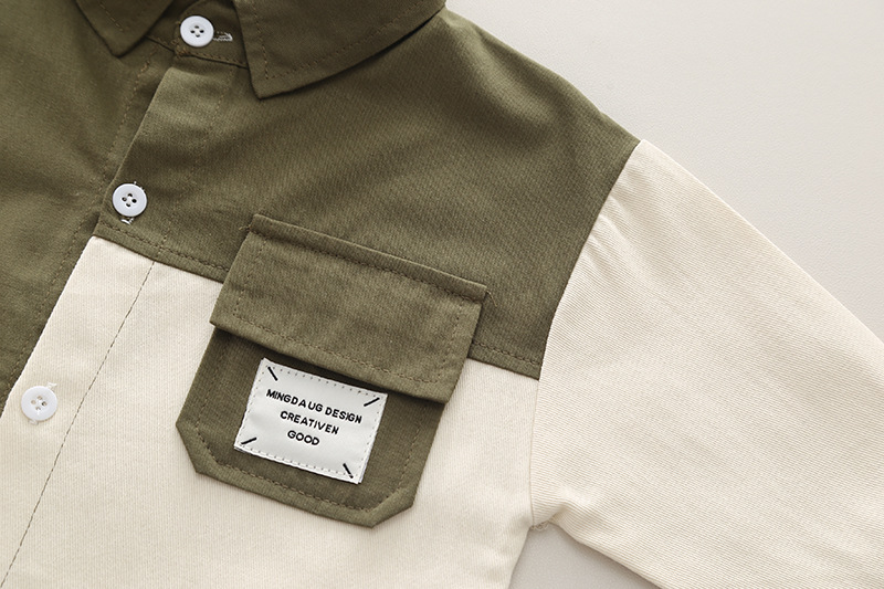 طقم سويت شيرت بأكمام طويلة وياقة مطوية للأولاد، ملابس أطفال كاجوال أنيقة بتصميم جديد