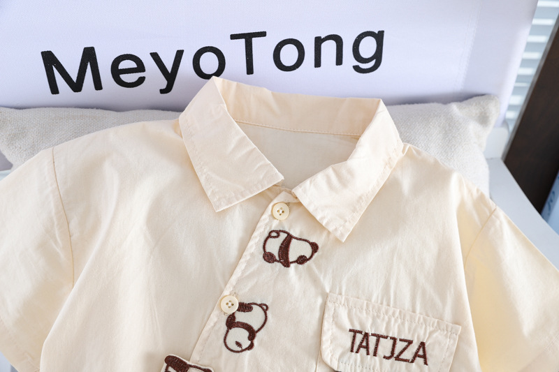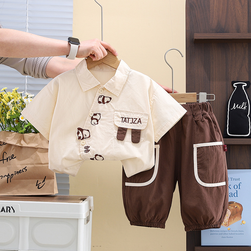 طقم ولادي بقميص رقيق بأكمام قصيرة وبنطال أنيق، بدلة للأطفال للمناسبات المنزلية