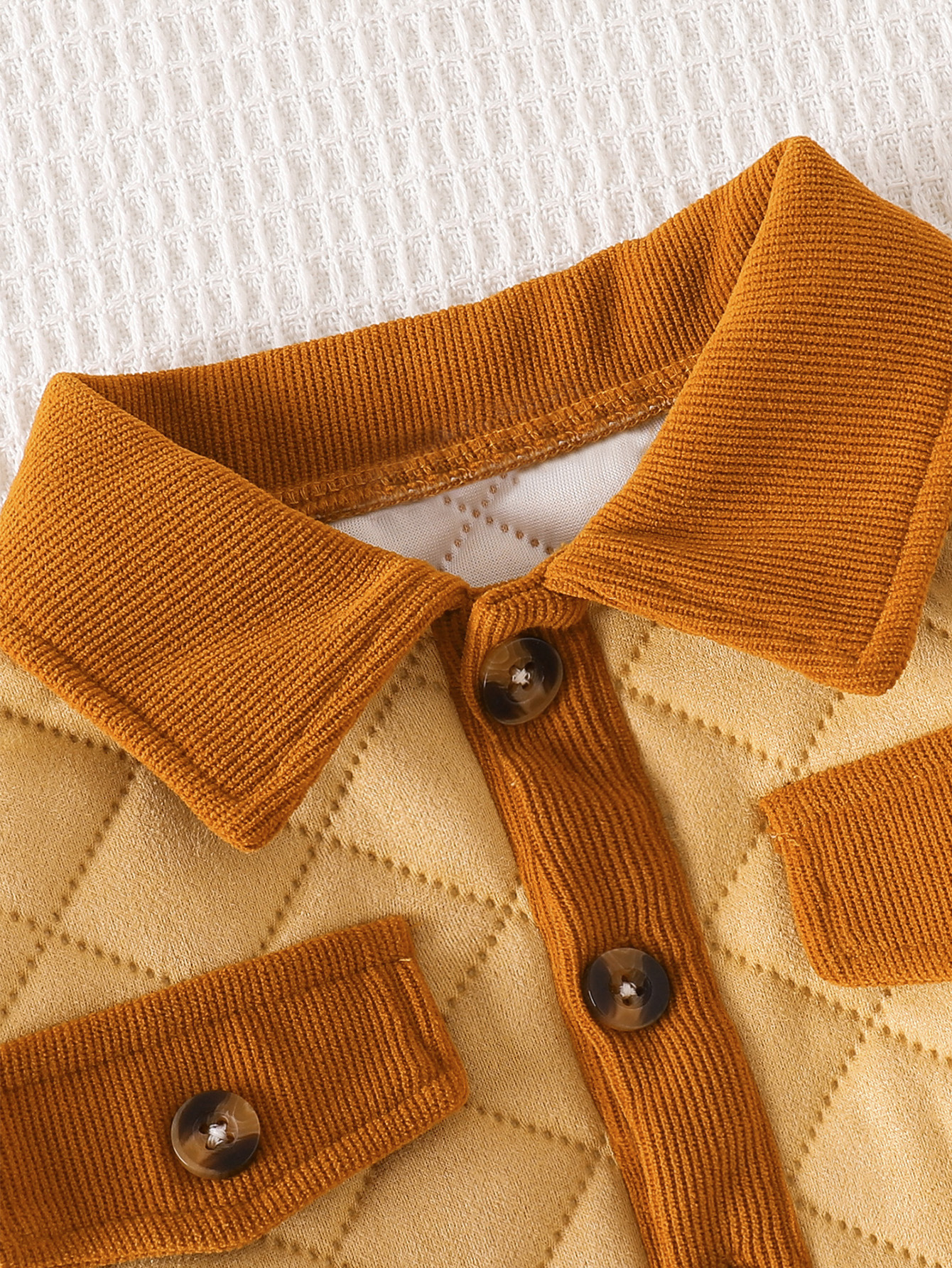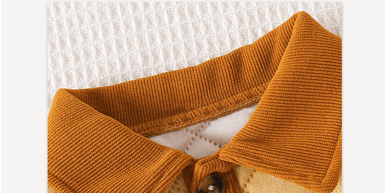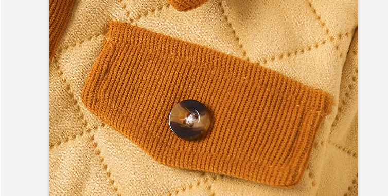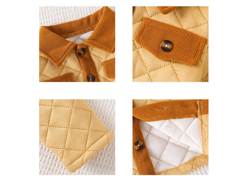 معطف أطفال بلون كاكي متباين من قماش مخملي مع ياقة مقلوبة، معطف سميك ودافئ طويل الكم