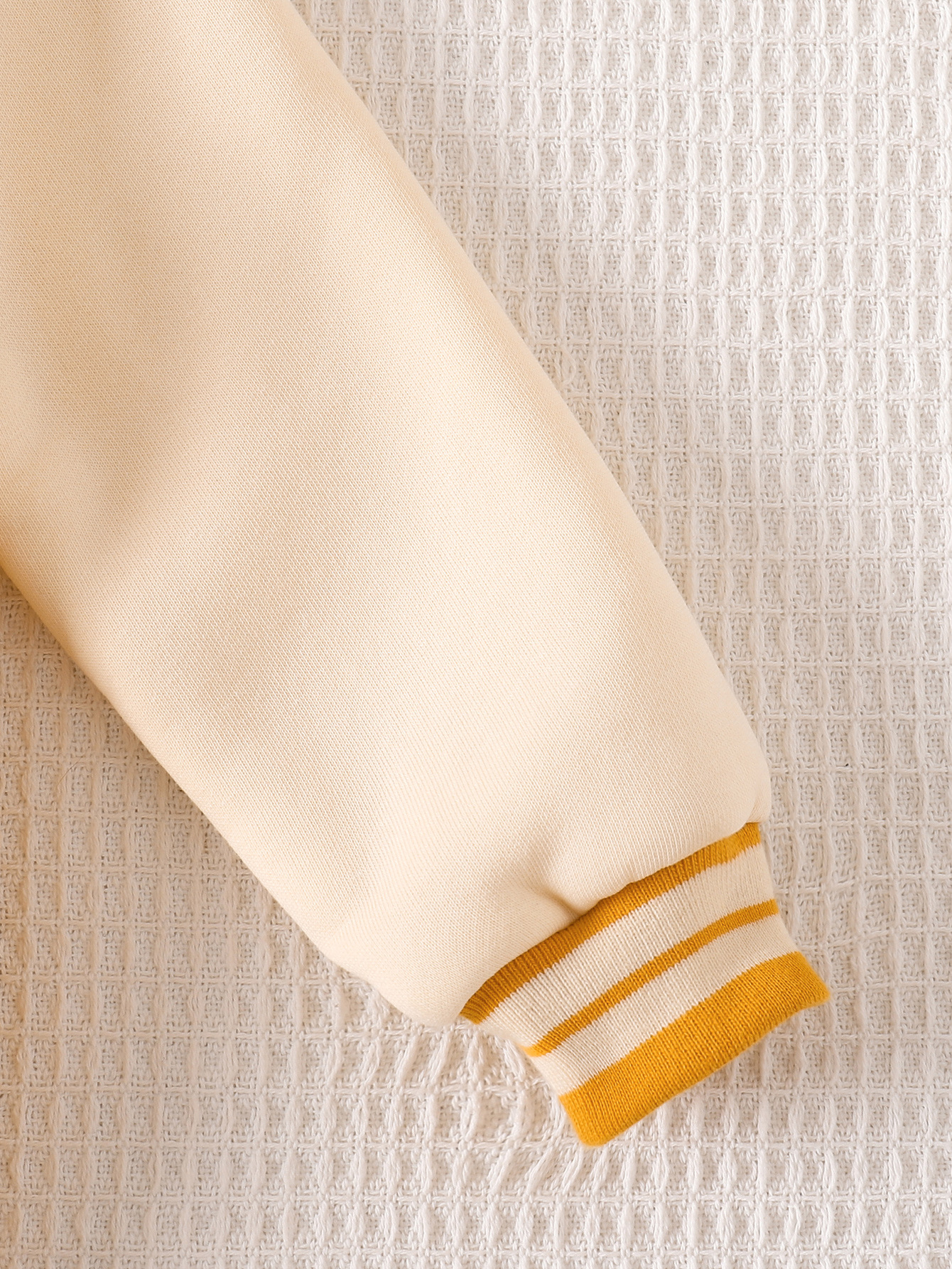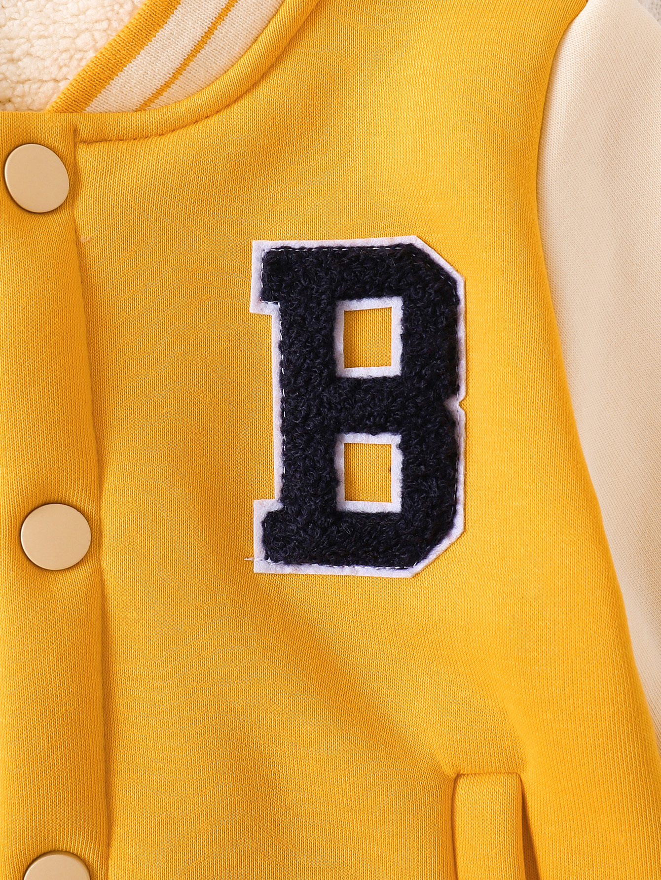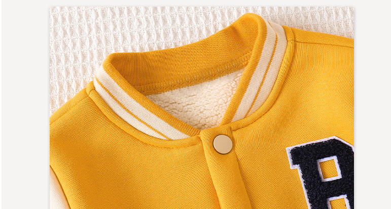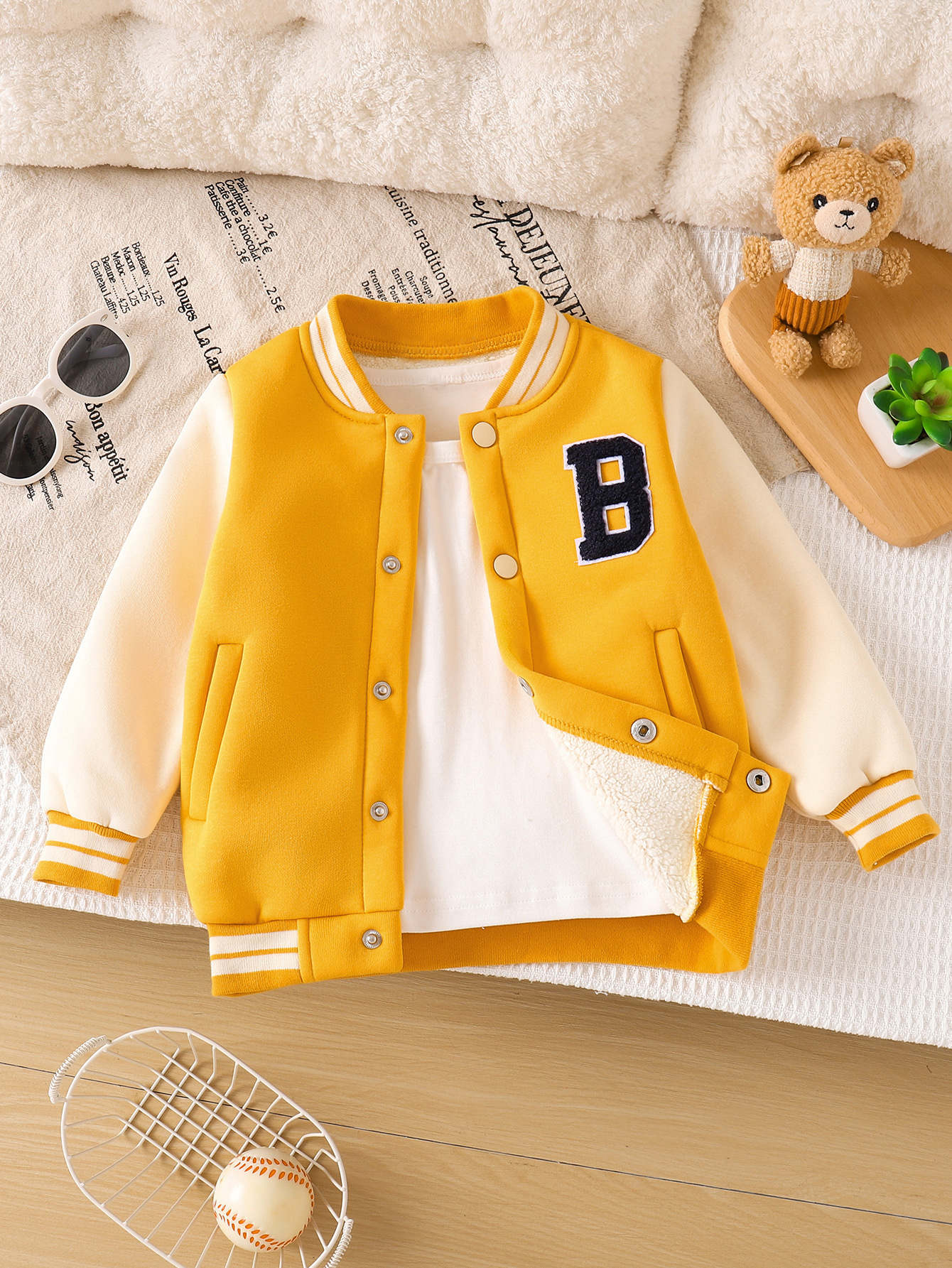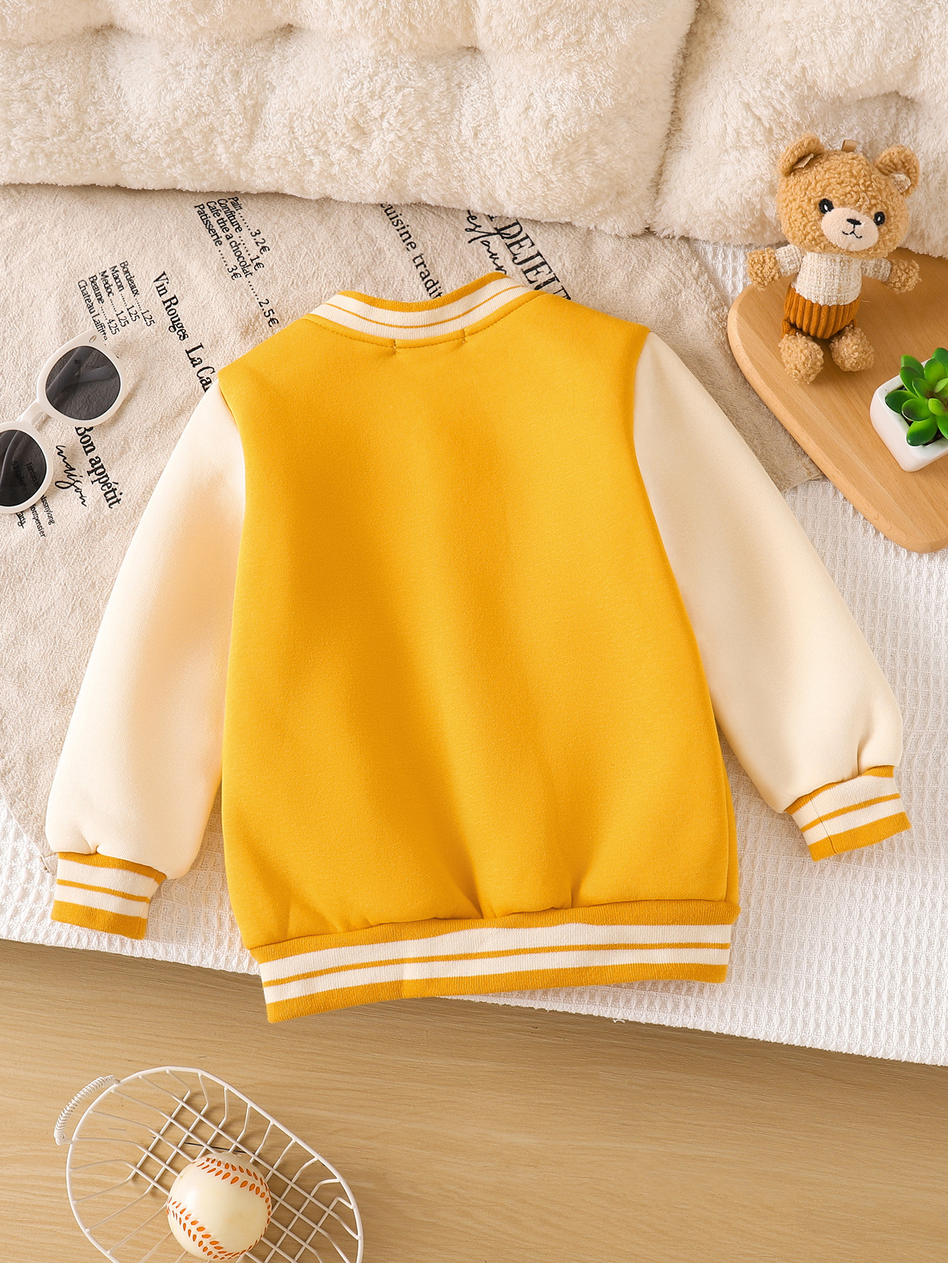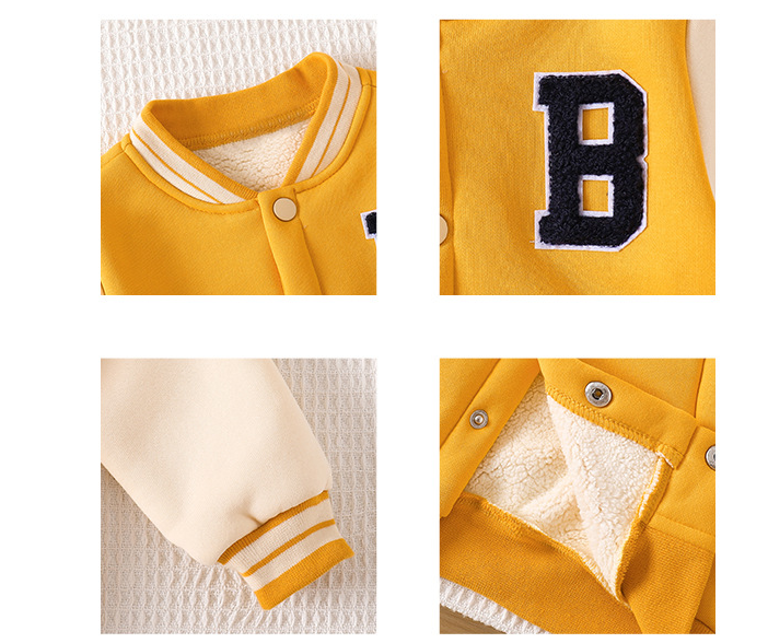 سترة بيسبول بلون أصفر بأحرف كبيرة، جاكيت ولادي سميك دافئ من المخمل على الطراز الأمريكي