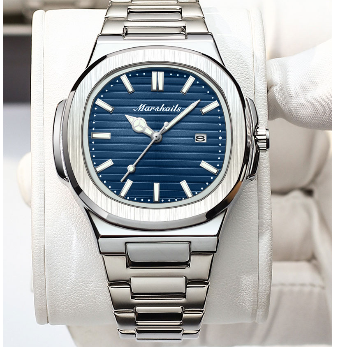 ساعة رجالية أوتومايكية فاخرة للرجال، ساعة كاجوال بحزام فولاذي ناعم قابل للتعديل