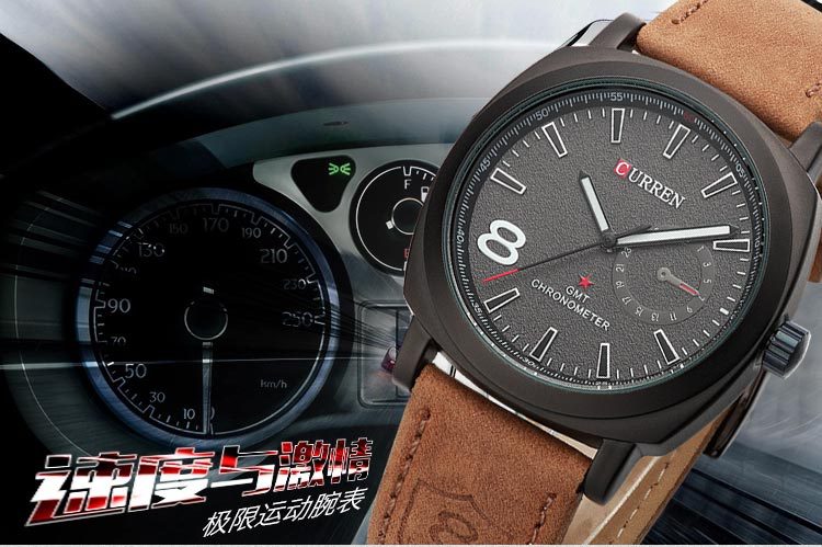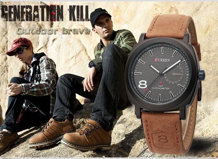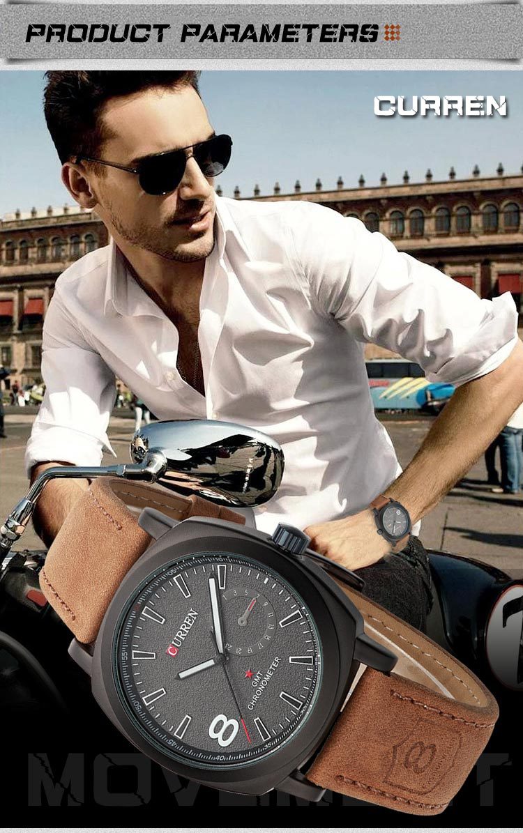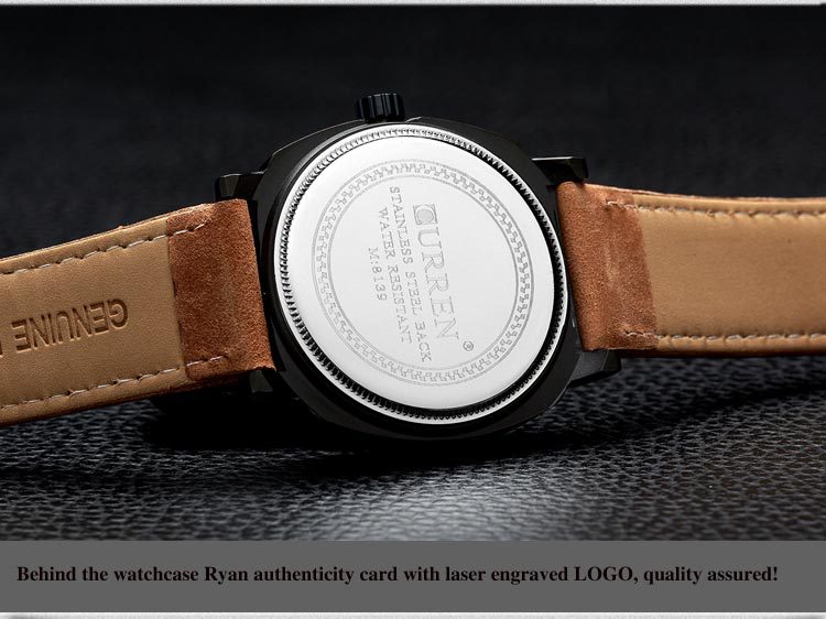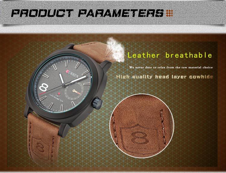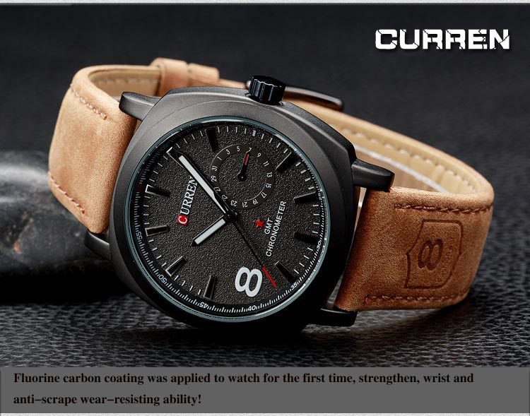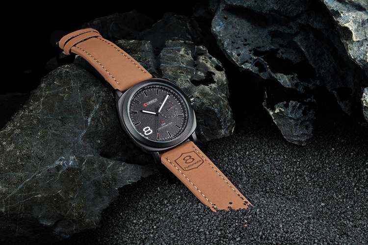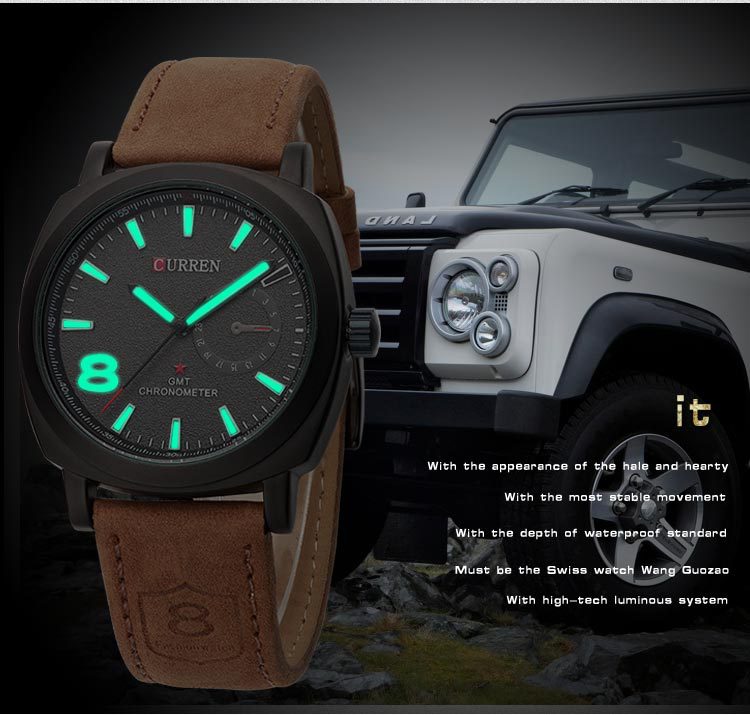 ساعة للرجال من الجلد المصقول المقاوم للماء بمينا صغير، ساعة كاجوال أنيقة مضيئة في الليل من ماركة كورن