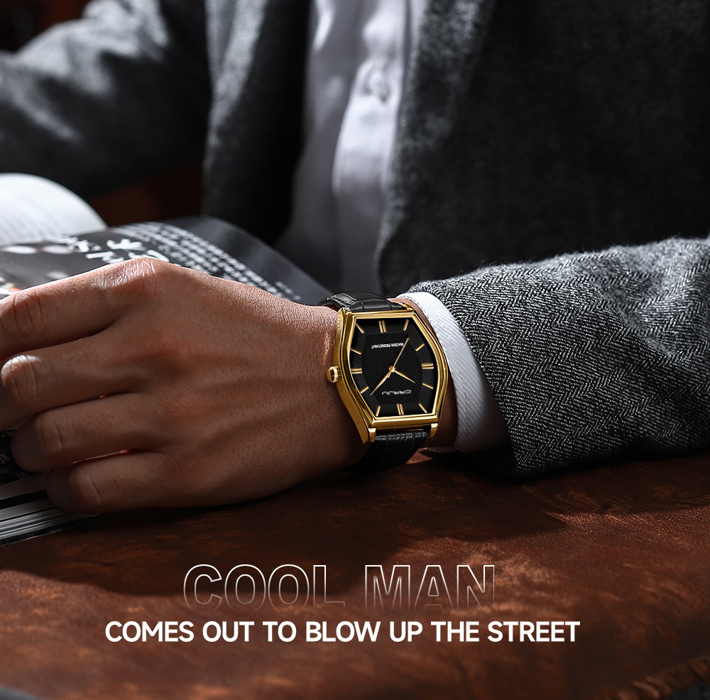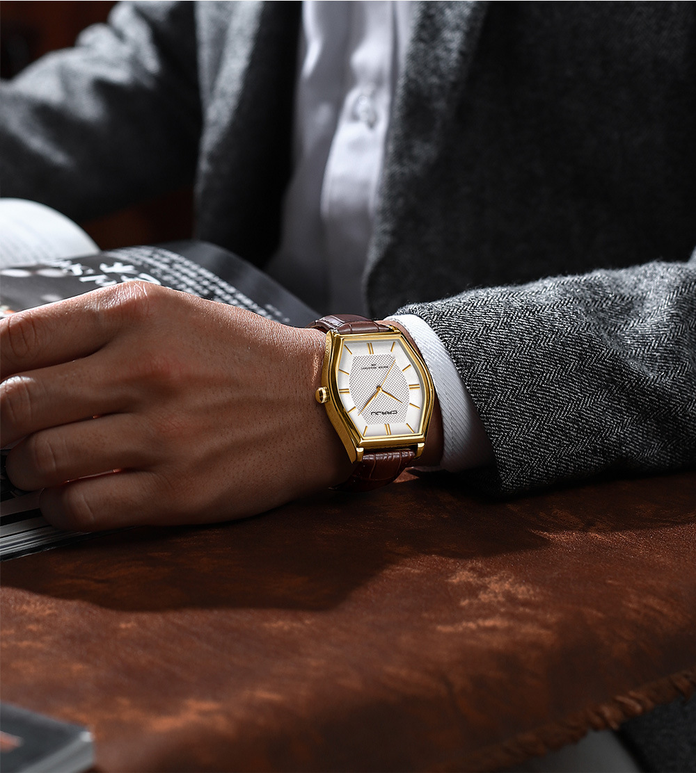 ساعة رسمية بصناعة يابانية فاخرة لرجال الأعمال ، ساعة بحزام من الجلد الفاخر مقاومة للماء بشكل منحني